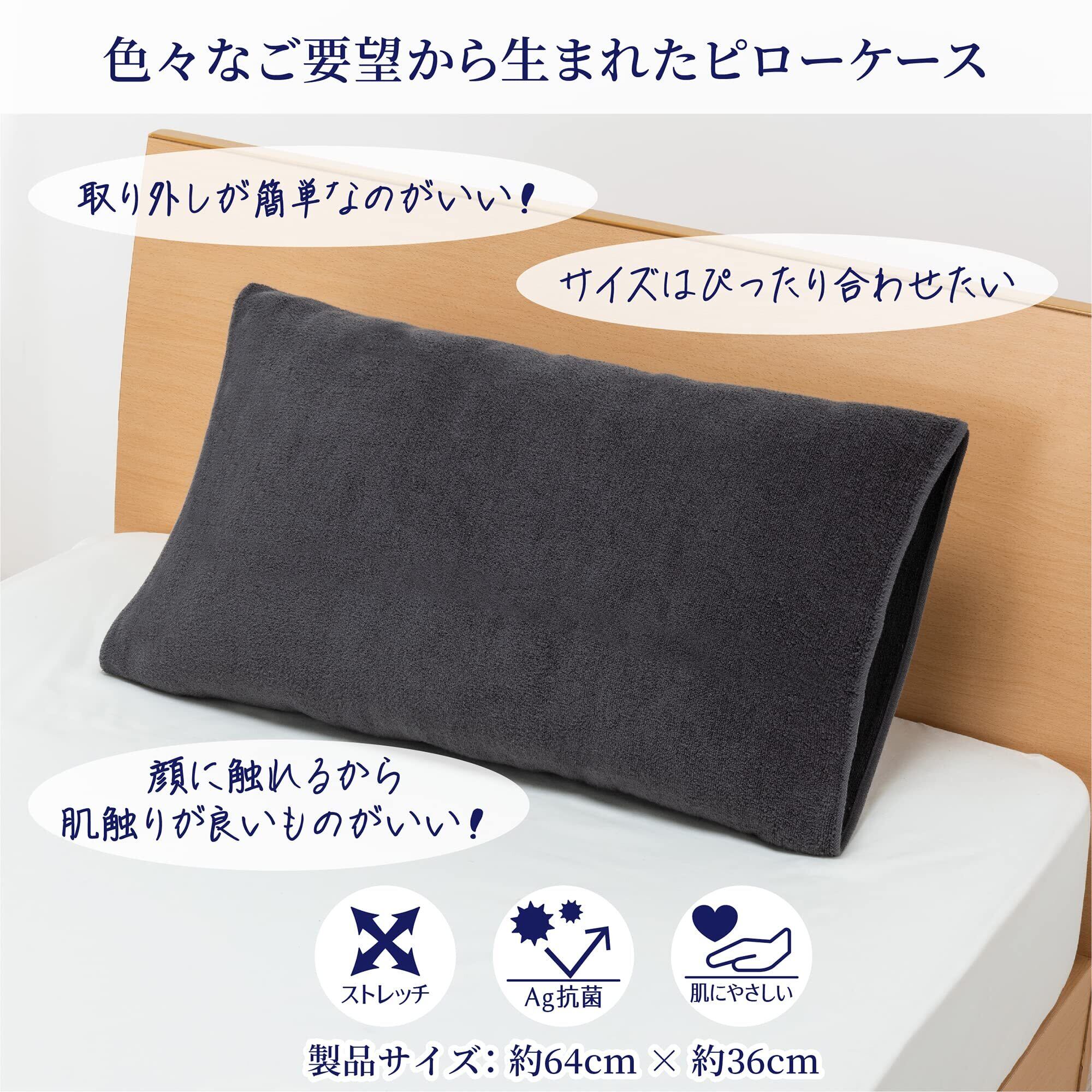 nishikawa【西川】 のびのび枕カバー Ag抗菌タイプ グレー 50X63cmのサイズの枕に対応 伸縮繊維なので多彩なサイズ かたちの枕にのびのびフィット やさしい肌触りのふわふわタオル パイル地 デザインが違うリバーシブルタイプ 洗える プレゼント やわらか タオル地 パイル ピローケース まくらカバー の