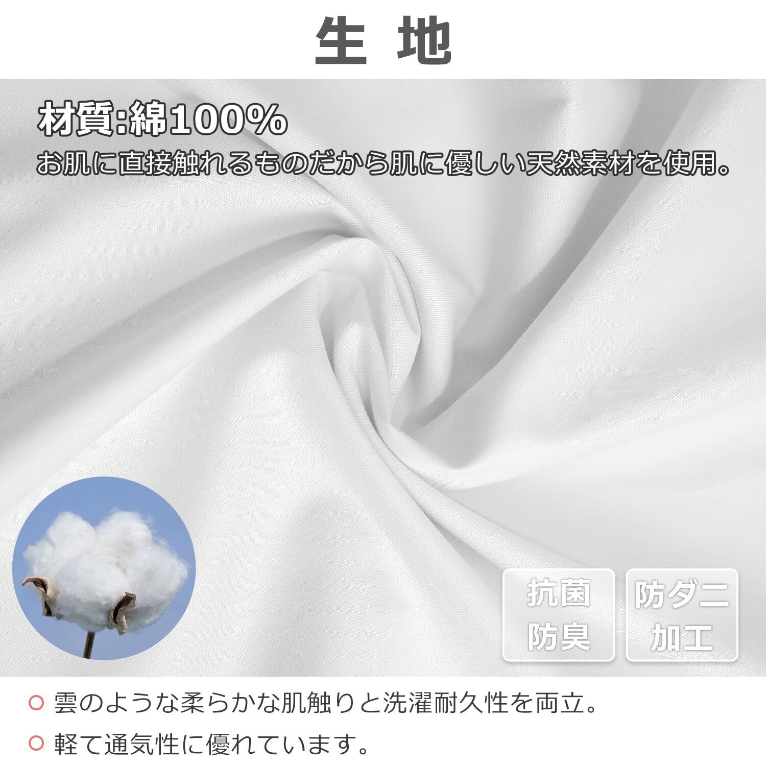 この枕カバーは、抗菌・防臭機能を備え、常に清潔で安心して使用できます。また、防ダニ加工が施されているため、敏感肌の方にも安心してお使いいただけます。ファスナー式のデザインにより、枕の出し入れが簡単でストレスを感じることもありません。