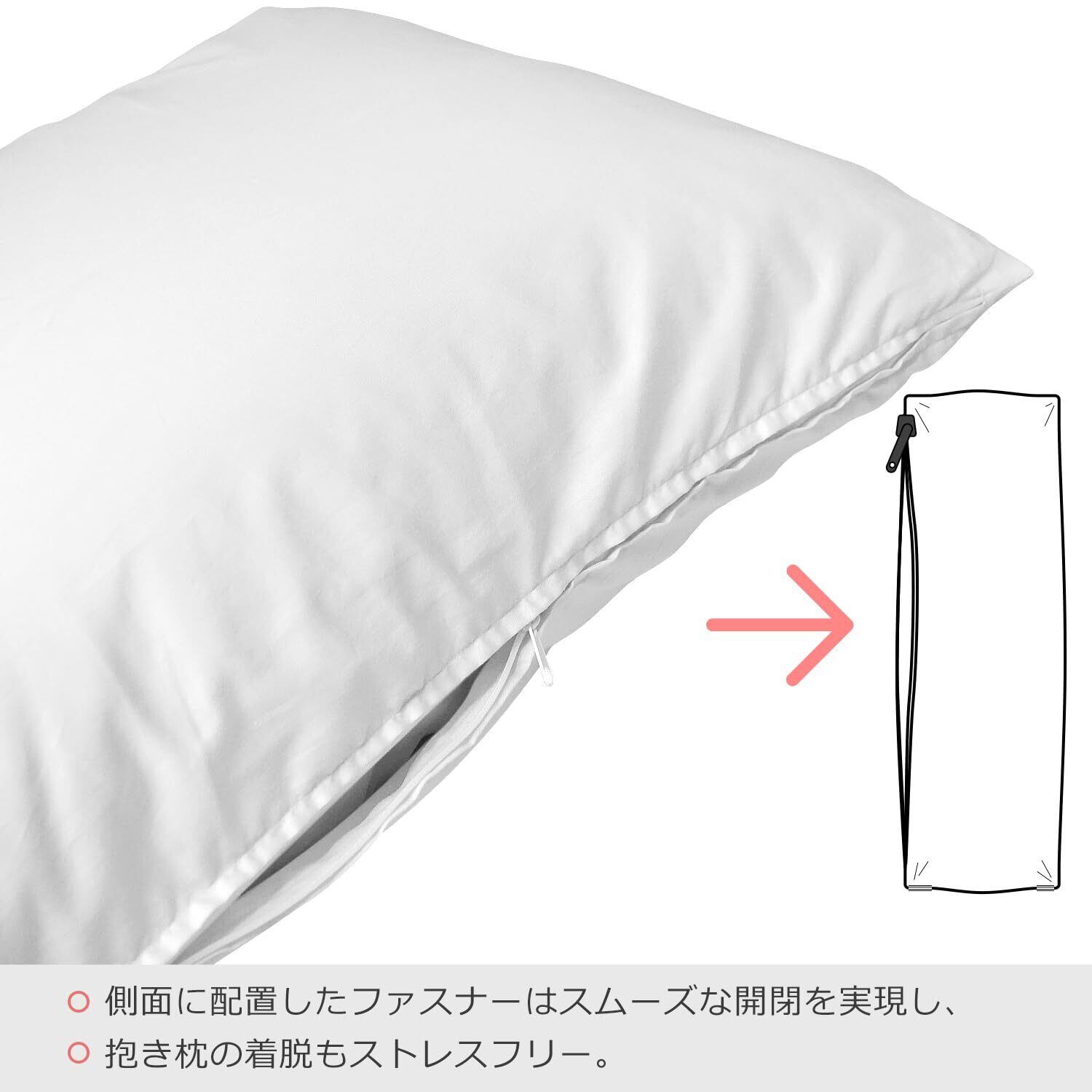 抱き枕カバー 160 50 ロング枕カバー 綿100% コットン 200本高密度生地 カバーのみ 肌触り優しい 洗える 防ダニ 抗菌 防臭 ファスナー式 柔らかい 選べる8色 無地 160×50cm 白 ホワイト