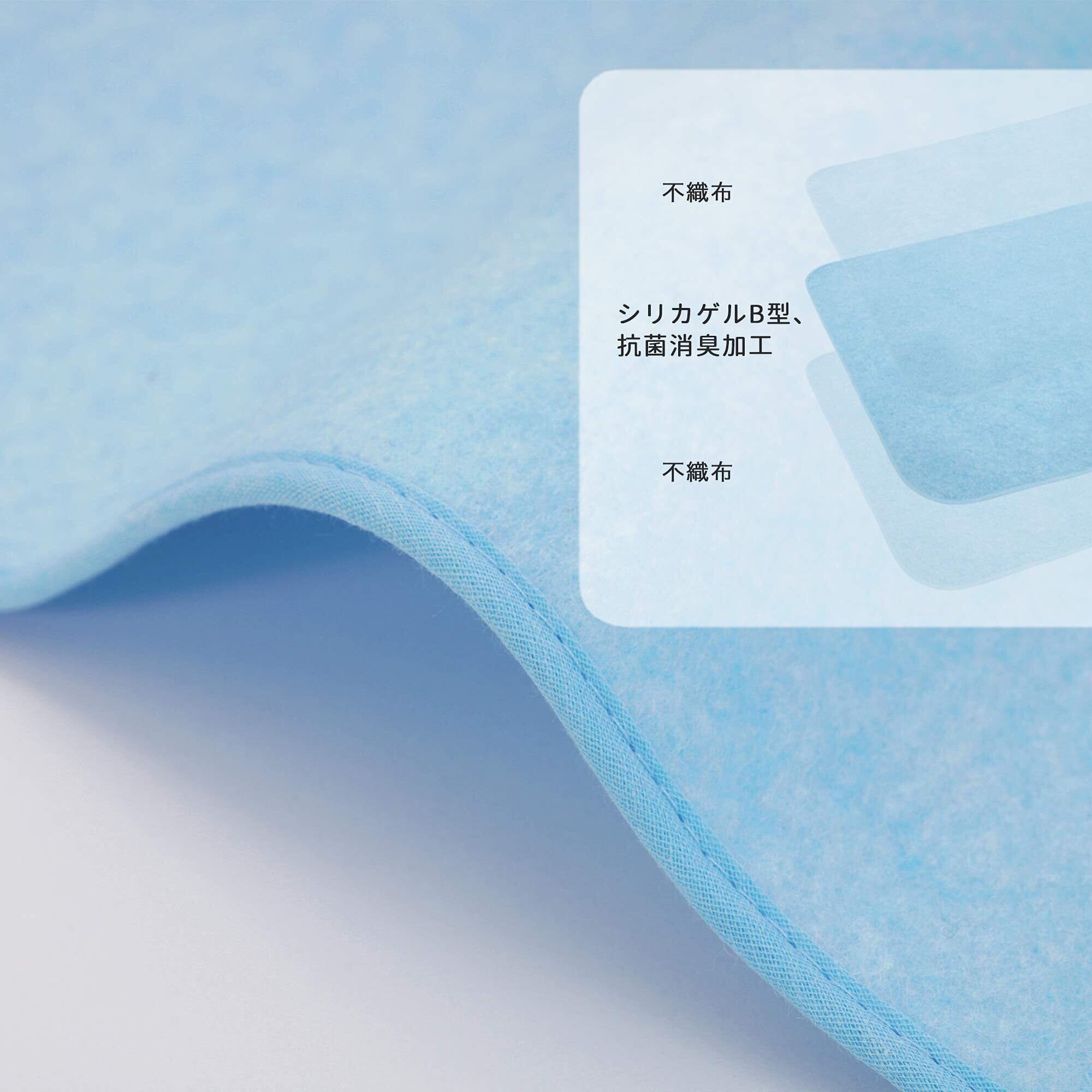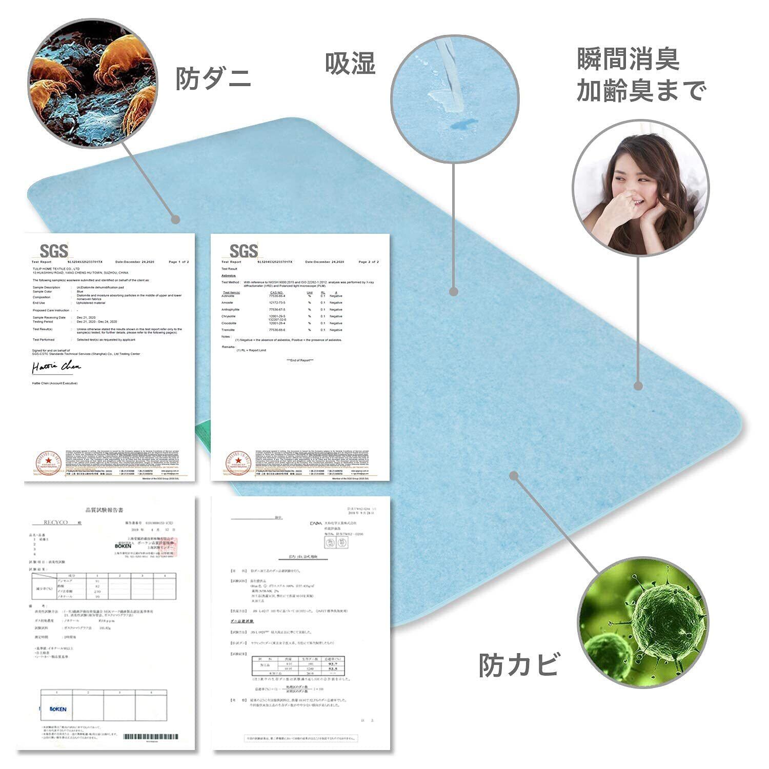 【消臭加工とシリカゲル入り】高吸湿力と高復元力を兼ね備えたB型シリカゲルを練り込んだ生地、敷いてるだけで、まわりの湿気、気になるにおい(アンモニア臭、汗臭、加齢臭など)もしっかり吸収します。部屋の湿度状況に合わせて、湿気を吸収だけなく、放出もします。消臭、防ダニ加工もあります。大人、子ども、ペット家族とも快適な睡眠を得ます。
