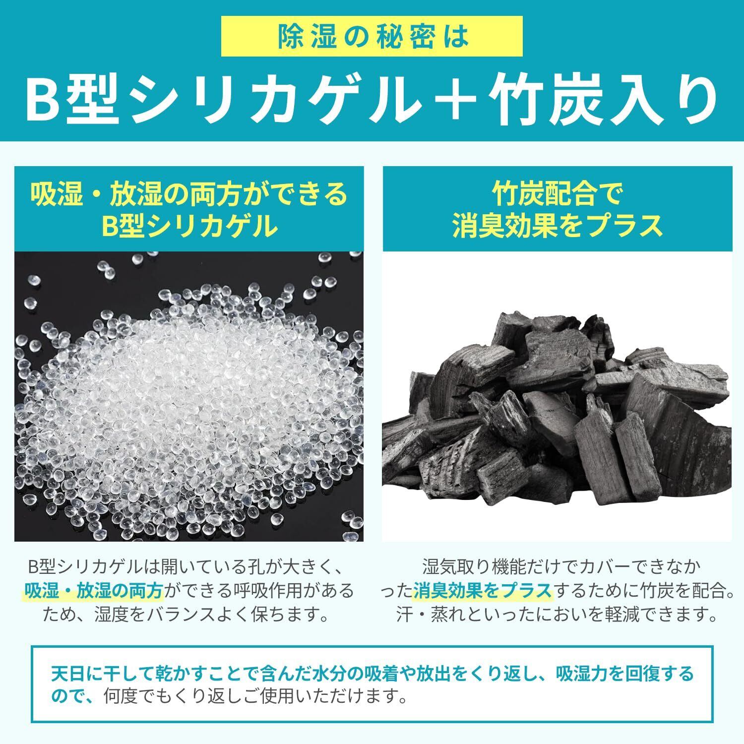 【グングン湿気を吸収】中材に優れた除湿効果を持つシリカゲルBタイプを採用。床からの湿気や寝汗など、布団にたまりがちな湿気をしっかり吸収し、ジメジメとした不快感を軽減します。布団が干せない日でも、サラサラ感をキープできて快適です。梅雨や夏の寝汗、冬の結露対策にも活躍し、一年を通してお使いいただけます。※吸湿量はシングルサイズで約2800cc(500mlペットボトル約6本分)