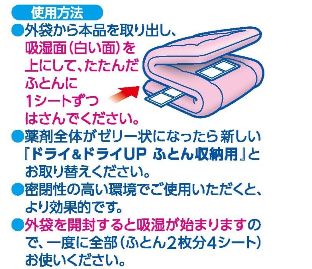 ドライ&ドライUP 除湿剤(4シート)。特別なリクエストがある場合は、備考欄にご記入ください。記載がない場合はキャンセルとなる可能性がございますので、ご了承ください。数量限定商品となっておりますので、お早めのご購入をお待ちしております!