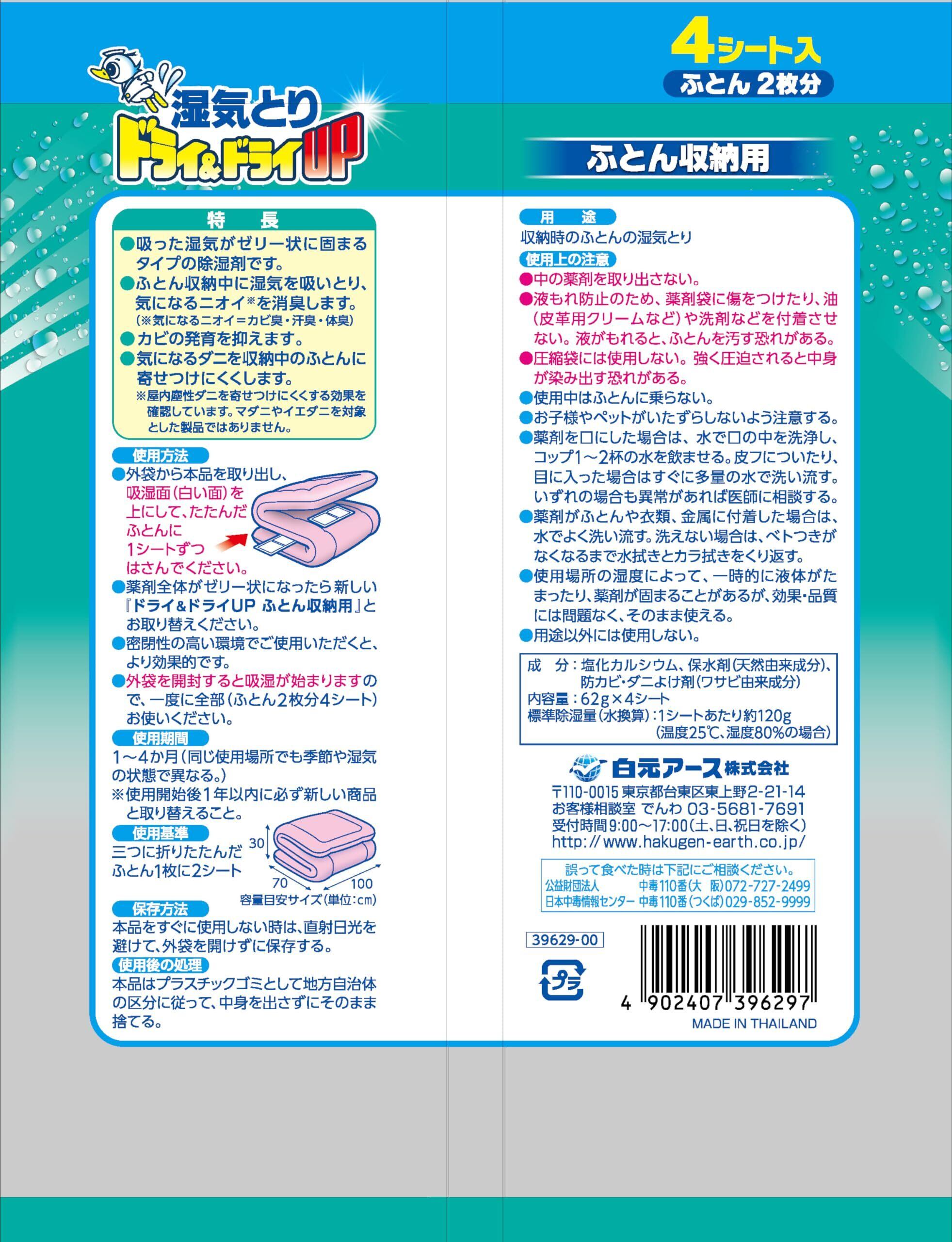 【特価セール】ドライ&ドライUP 除湿剤 ふとん収納用 4シート 消臭 湿気取り 大容量 防カビ ダニよけ 布団 白元アース