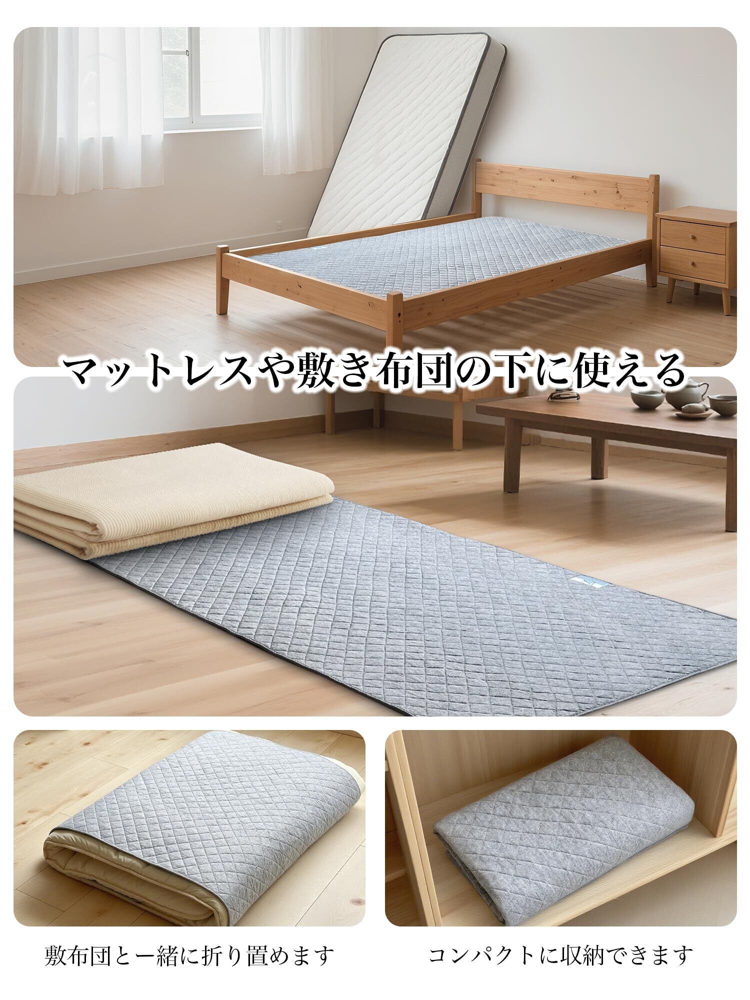 この除湿シートは、シングルサイズの130×180cmで、湿気をしっかりと吸収し、快適な睡眠空間を作り出します。グレーのシンプルなデザインは、どんなお部屋にもマッチしやすく、さわやかな印象を与えます。