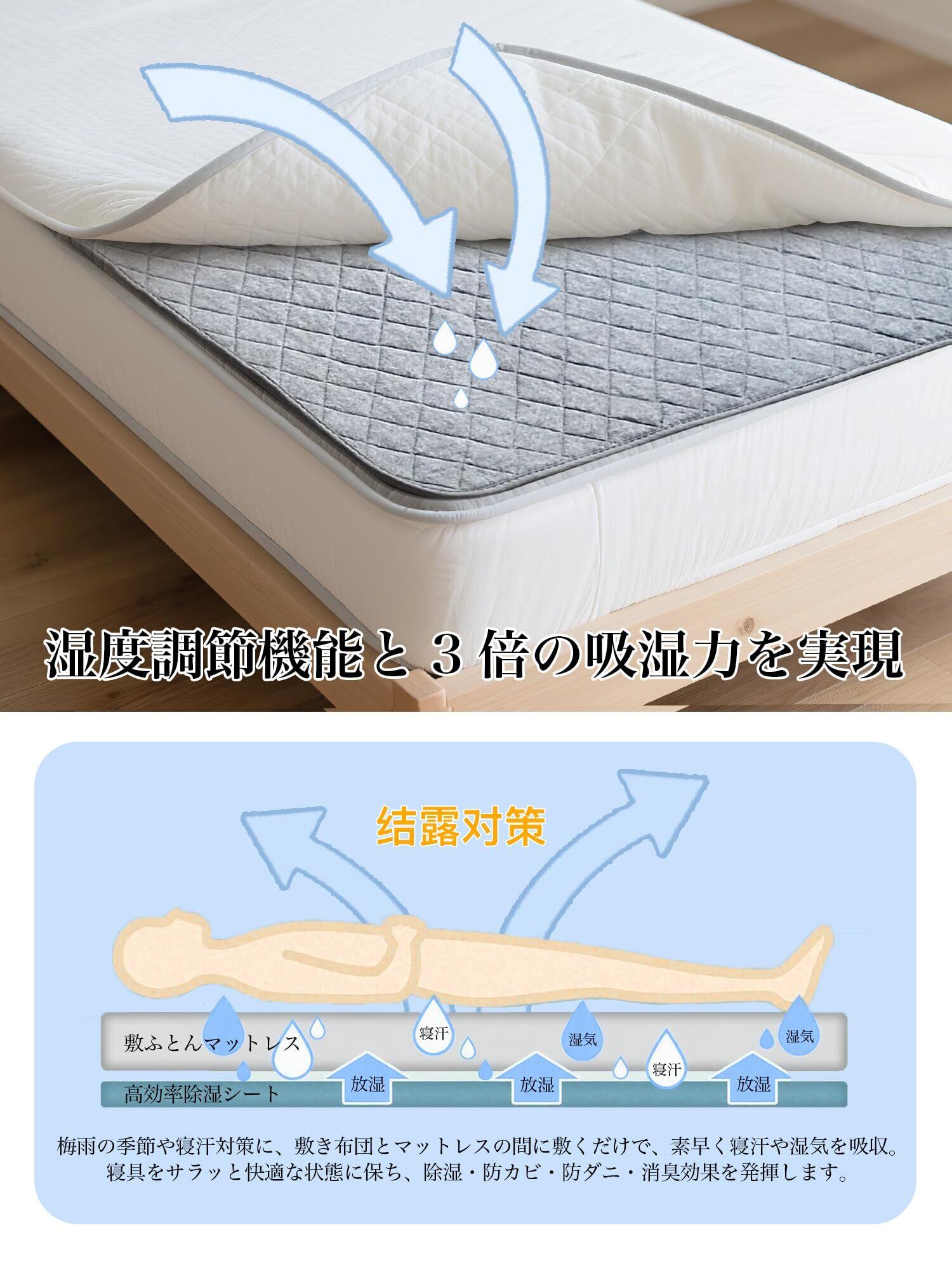除湿シート シングル 湿気対策 洗える 消臭 防ダニ 湿センサー付き 結露対策 梅雨 吸湿 調湿 除湿マット 吸湿シート 寝具用除湿シート 湿気取り 繰り返し使える グレー (130x180cm)