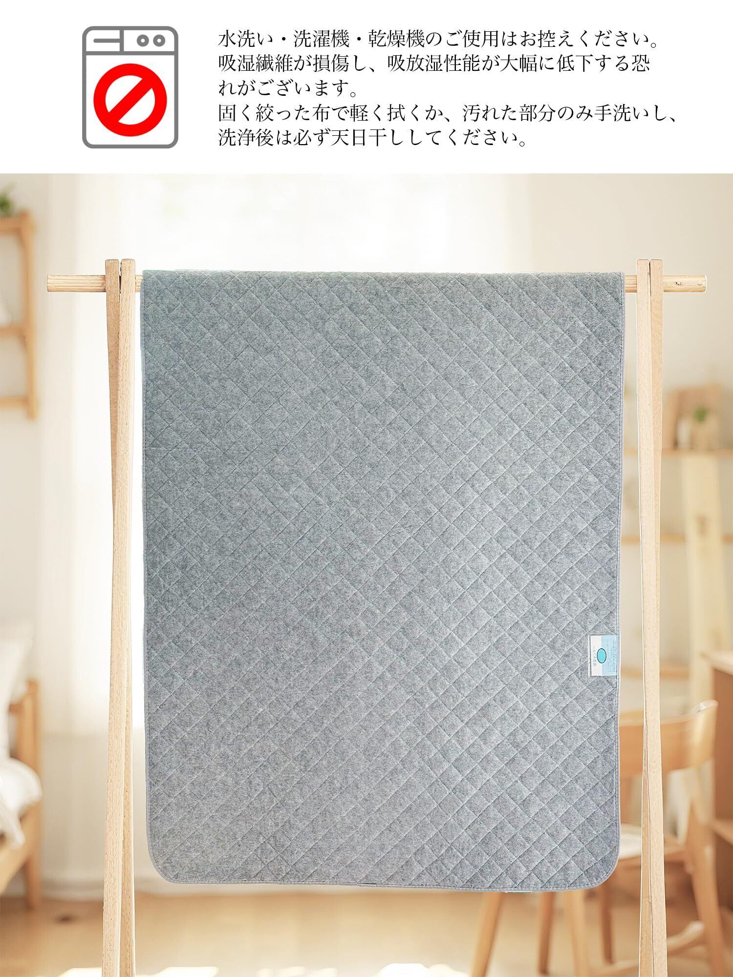 【丸洗いは禁止】本品は特殊吸湿繊維のサンドイッチ構造のため、洗濯機での丸洗いは厳禁です。汚れた場合は、濡れた布で軽く拭くか、汚れた部分のみ手洗いし、洗浄後は天日干ししてください。