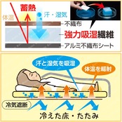 ●不織布と強力に吸湿する特殊繊維を使用し湿気は吸収。お布団の不快なジメジメ感、結露やカビを防ぐ。