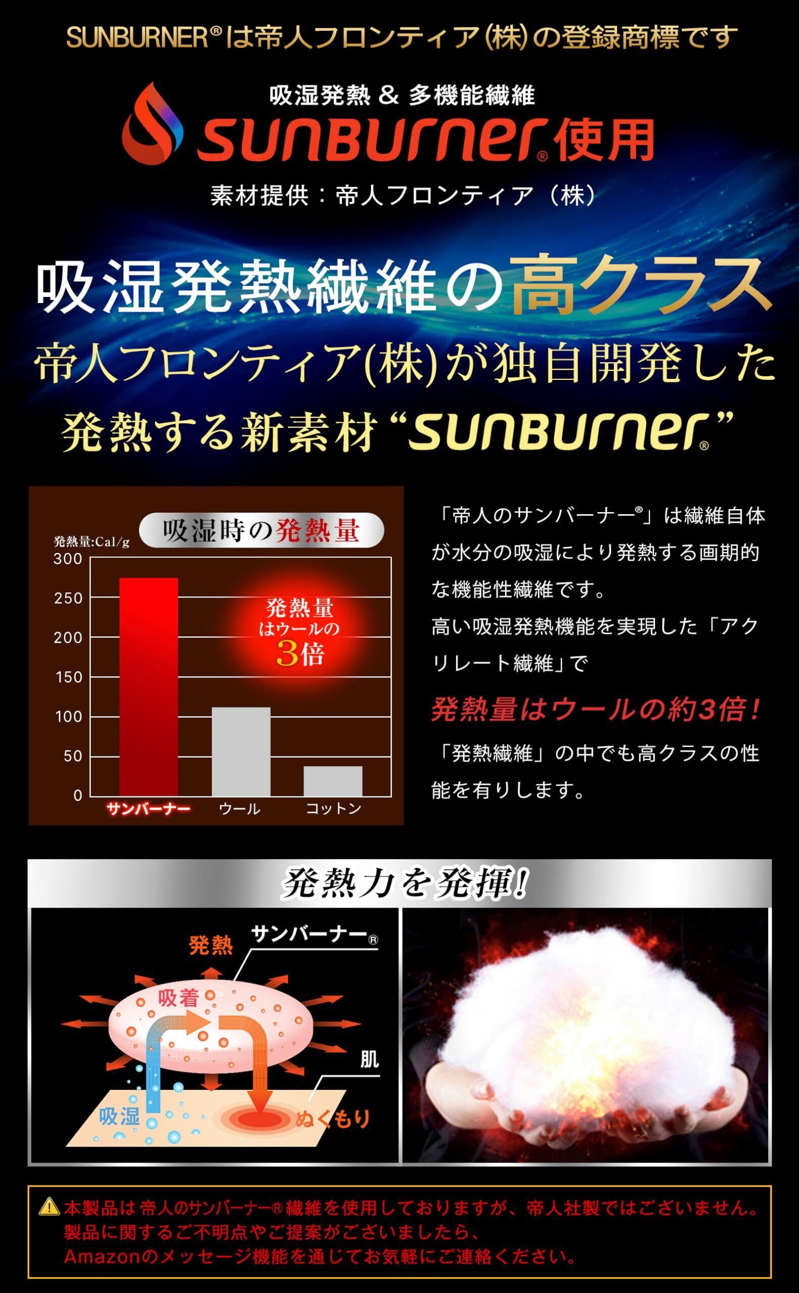 【帝人のサンバーナー吸湿発熱】本品では暖かさを求めて帝人のサンバーナーをベッドパッド上層中綿に一部使用しております。帝人のサンバーナー高機能中綿は、普通抗菌中綿や普通発熱中綿とは異なり、テクノロジーから生まれた吸湿発熱素材、吸湿力が極めて高く、ウールのおよそ3倍の吸着熱を生み出し、「発熱繊維」の中でも上位クラスの性能を備えております。他にも、消臭機能、抗菌機能においても優れており、背中と暖かいしきぱっどの快適睡眠環境を作り出す強力生地となります。