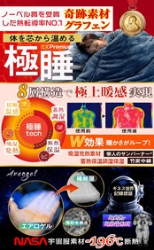 エアロゲルとアルミシートのW断熱設計により、外の冷気を強力に遮断し、内側の温かさを逃がしません。さらに、吸湿発熱機能で体温を効率的に保持し、朝までぽかぽかの温もりが続きます。寒い冬でも安心して眠れるアイテムです。