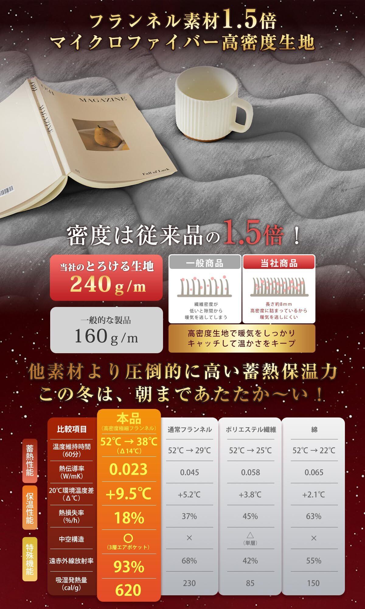 【とろける肌触り·驚きの保温力】約8㎜の超極細フランネル繊維がとろけるように肌にフィットし、暖かさを逃がしません。頬ずりしたくなる滑らかさで、冬の冷えをしっかりシャットアウト!