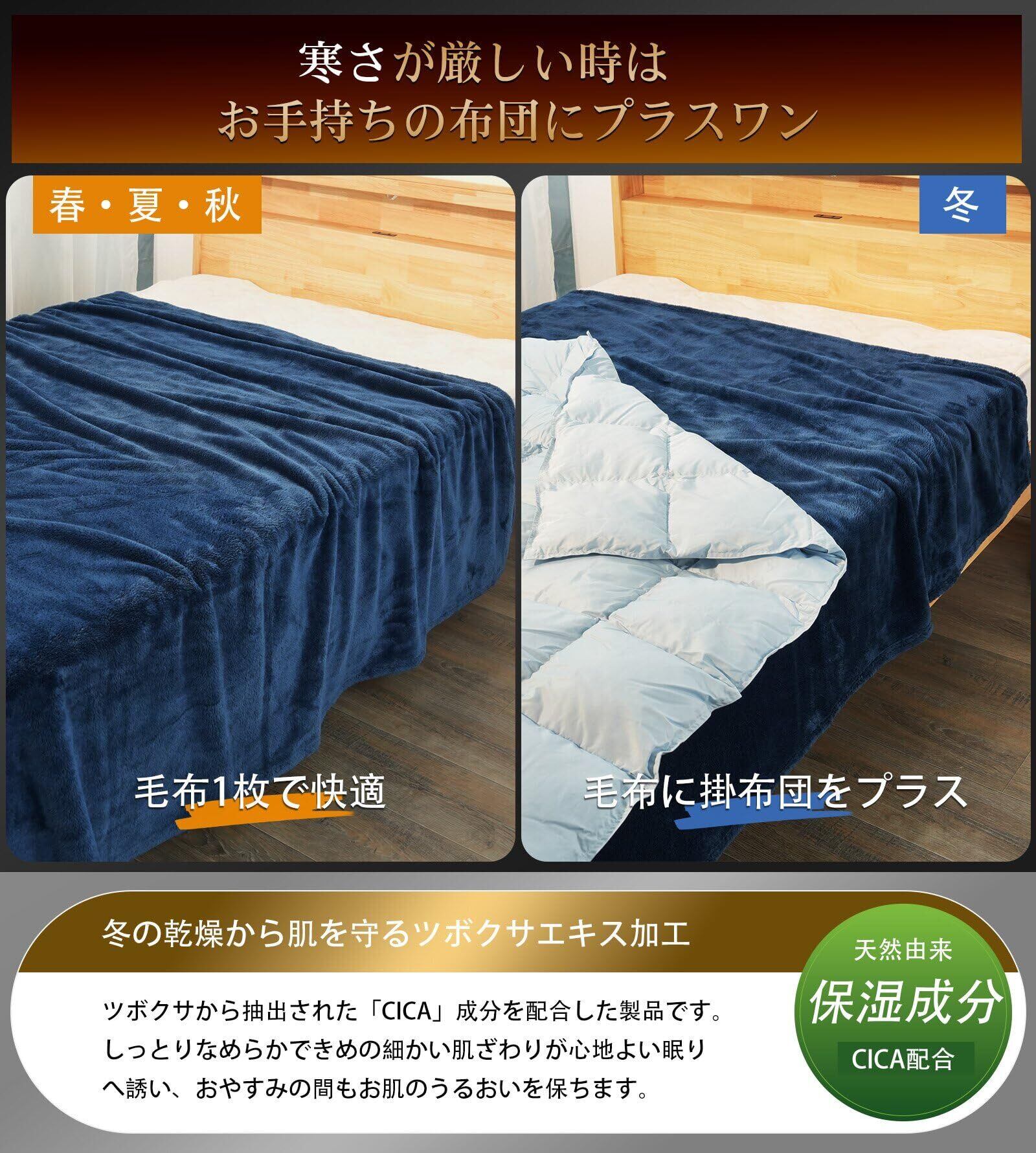 RAKU HOME W極 遠赤発熱 毛布 冬用 シングル 冬 軽量 あったか 暖かい ふわふわ 洗える 軽い ブランケット もうふ 抗菌防臭防ダニ 静電気防止 CICA保湿加工 オールシーズン 夏冬兼用 超高密度 フランネル マイクロファイバ― 車中泊 ひざ掛け 140×190cm ネイビー