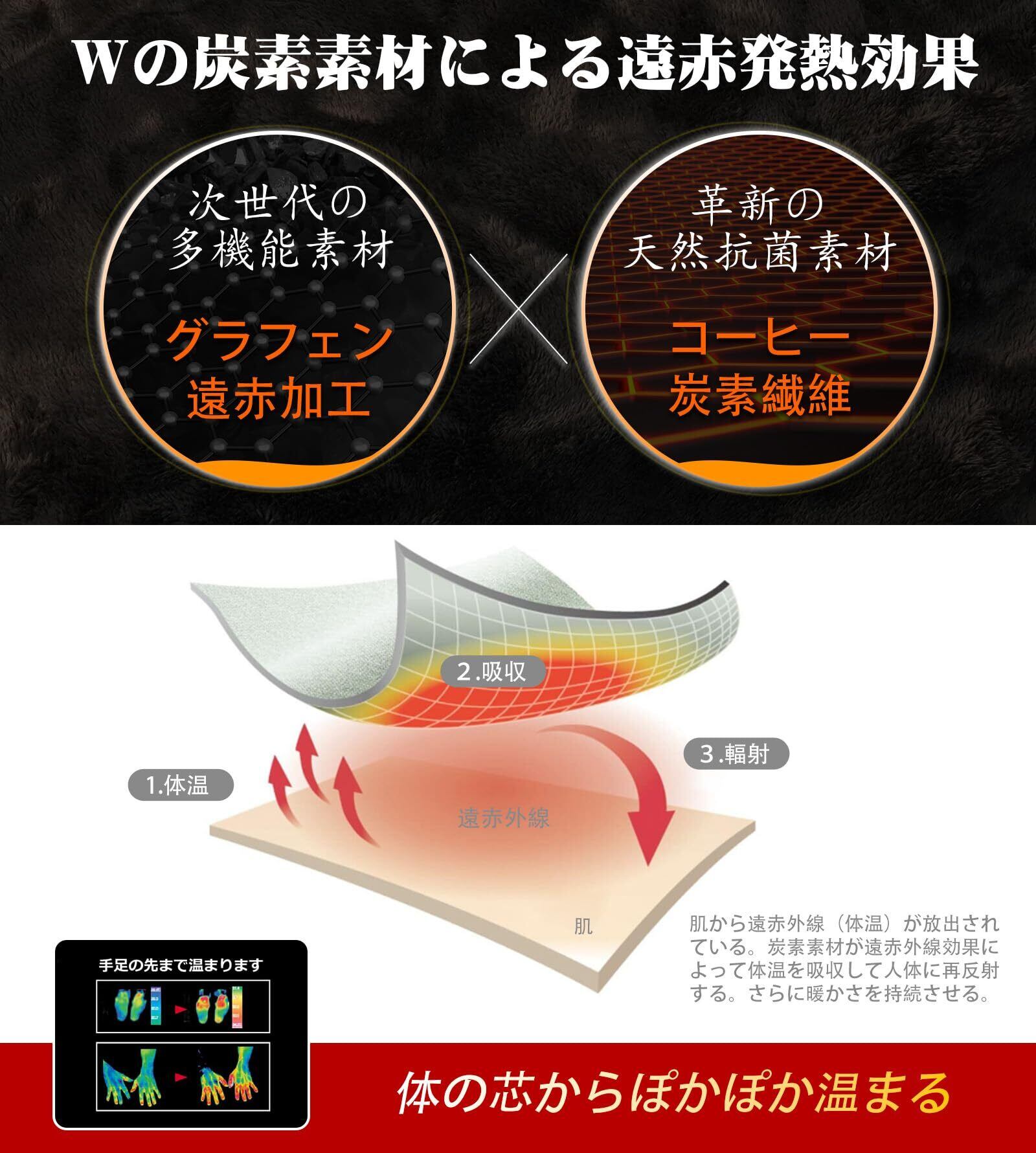 【「暖かい」以上の「寝やすさ」を求めてダブルの遠赤外線テクノロジーを搭載した毛布の進化版「W極Ⓡ遠赤温熱毛布」】数ある高機能繊維の中でも、炭素素材特有の遠赤外線の放射熱で体の深部体温を効率よく上げ、内側からじんわり温める機能に注目。フランネル生地全面にノーベル賞を受賞した温活炭素成分グラフェン配合加工を施し、さらにグランド部分に消臭抗菌と蓄熱保温作用に優れた天然炭素繊維コーヒーカーボンファイバーを採用しています。Wの遠赤外線効果と驚異の熱伝導性によって、人から放出される熱(体温)を吸収して体に再放射することで、効率的な熱サイクルを形成し、朝までしっかりポカポカのまま。身体の内側から温めますので、毛布から出た後も温かさ長続き!さらに細胞の分子活動を活性化することで、血行や新陳代謝を促進させるなど体を眠りやすい体へ導く効果も期待できます。