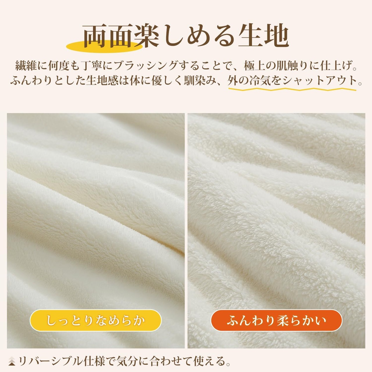 「魅力的な肌触り」なめらかな肌触りの毛布で、吸湿発熱中綿とふんわり柔らかいフランネルの三層構造が、贅沢な暖かさを提供します。襟付きで首元も快適、触って心地よく、至福のひとときを感じられます。