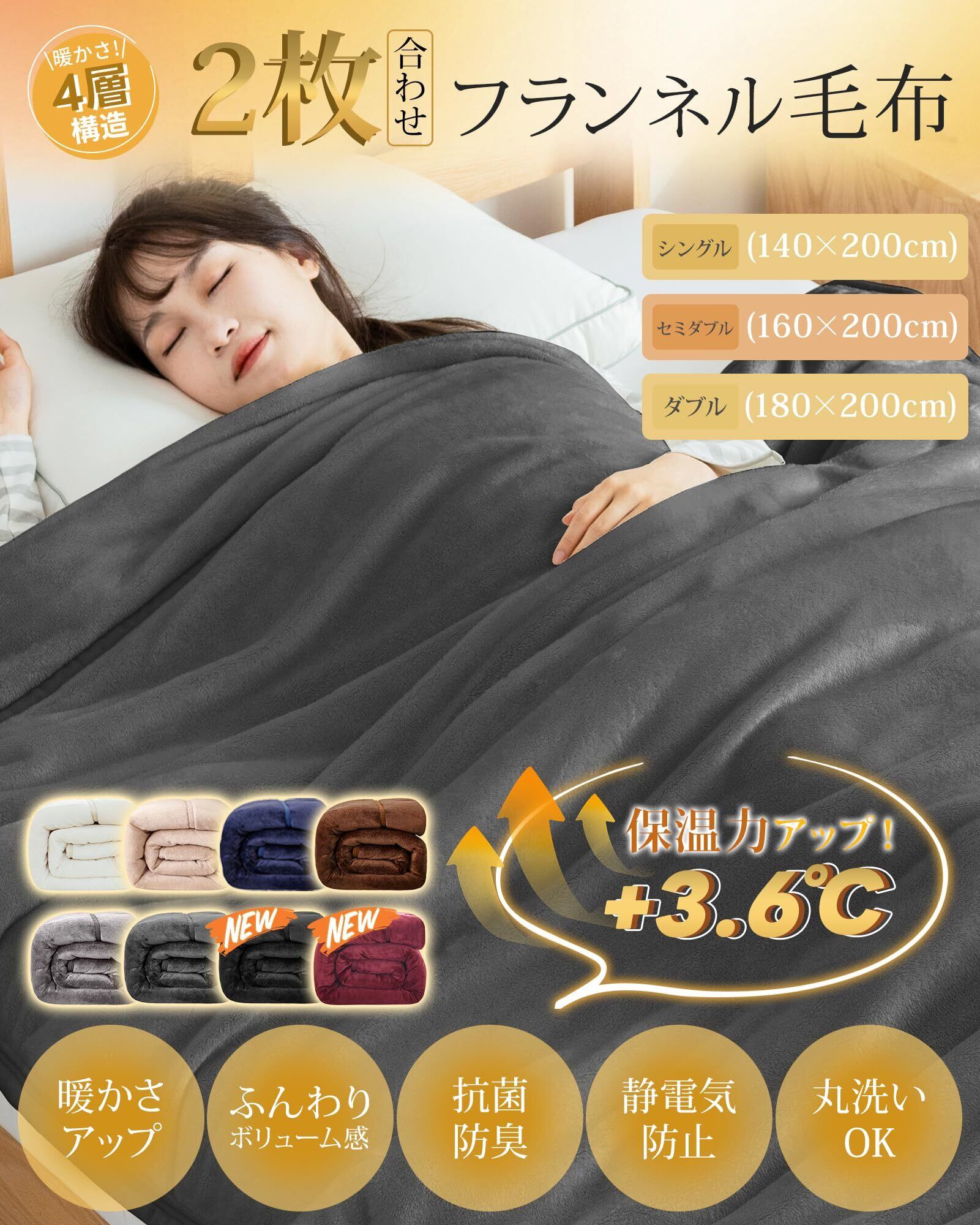 【静電気防止・ほこりが出にくい】静電気防止加工をしておりますので、冬場に空気が乾燥してもいやなパチパチ静電気を有効的に防止することができます(※ご注意:静電気の発生を抑える加工で、静電気を完全に除去することができません)。起毛部分がほつれにくくて抜けにくい・ホコリが出にくいので、洗濯機での丸洗いができます。受け取ったばかりの毛布には、浮いた毛がある場合がありますが、これは正常状況です。使用前に一度お洗濯することをお勧めします。