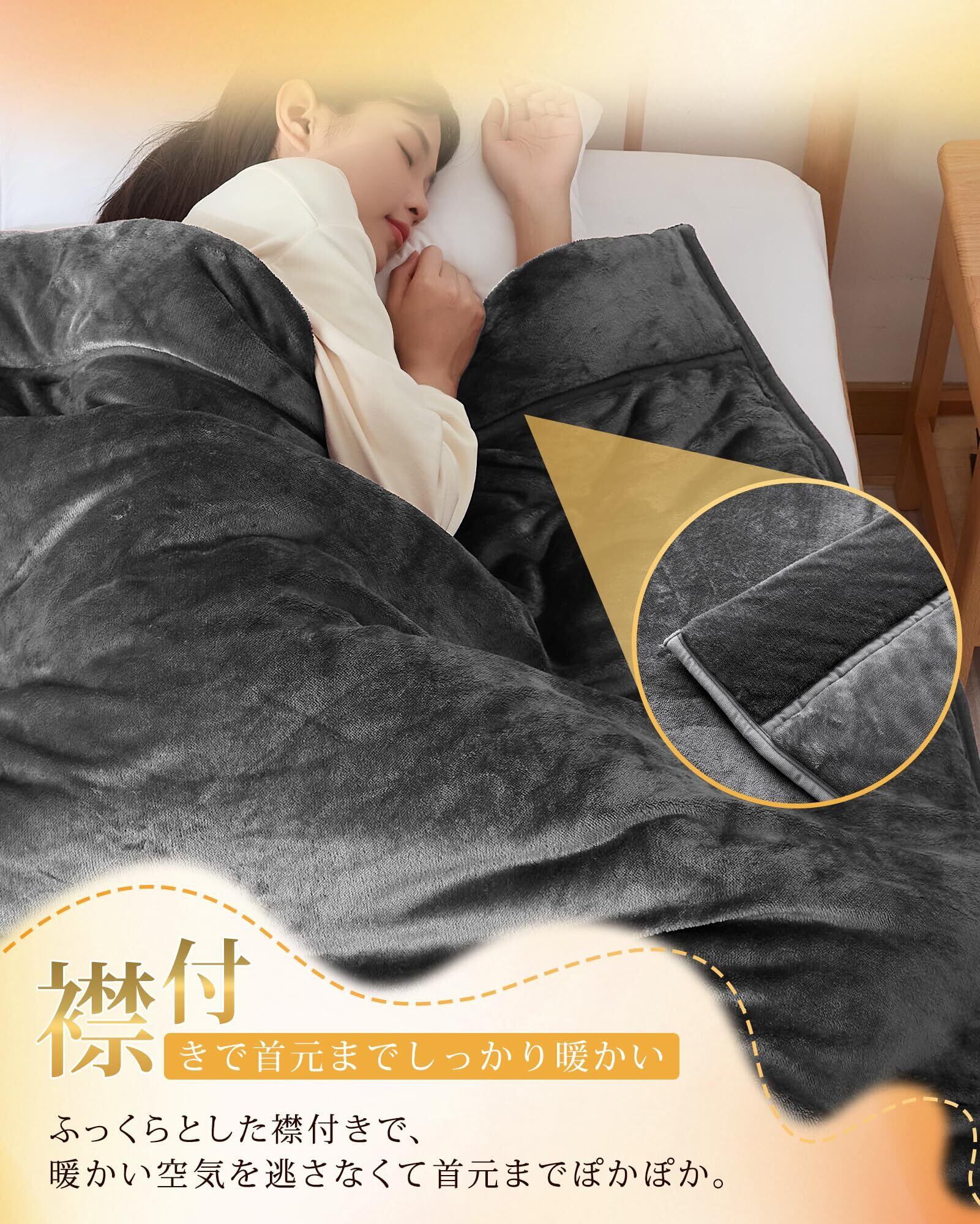 毛布 シングル 冬 厚手 ブランケット 二枚合わせ 冬用 極厚 フランネル もこもこ 暖かい 四層構造 シンサレート中綿入り 極暖 蓄熱断熱素材 ふわふわ 襟付き 静電気防止 洗える ボリューム 吸湿発熱 多用途 抗菌防臭 防ダニ 洗える 掛け敷き兼用 チャコールグレー 140×200cm