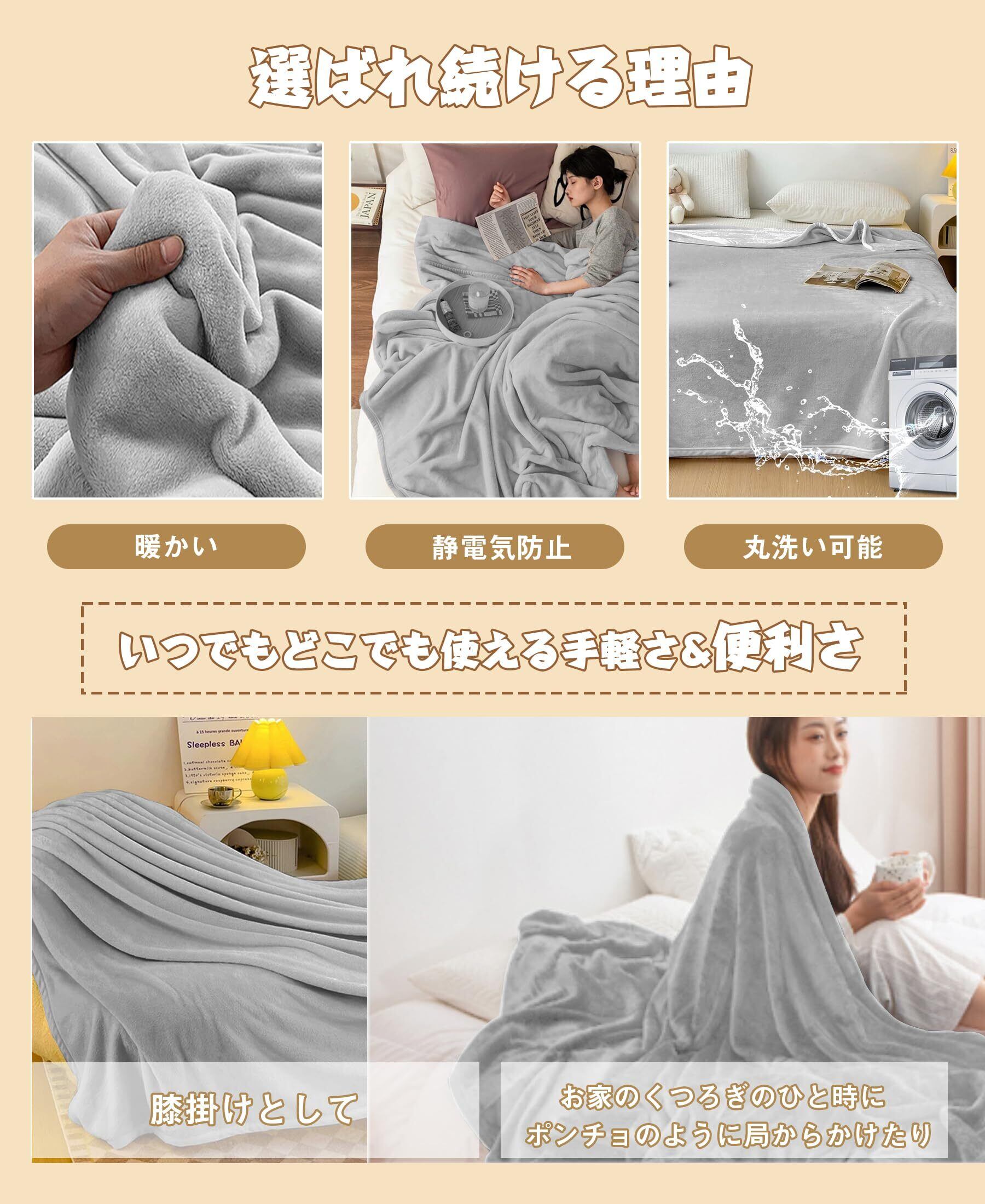 毛布 シングル AYO 冬用 ブランケット 真冬もうふ ひざ掛け・ハーフケット冬用 冷房対策 マイクロファイバー 柔らかく肌触り フランネル 四季適用 洗える 静電防止(140*200CM,ライトグレー)
