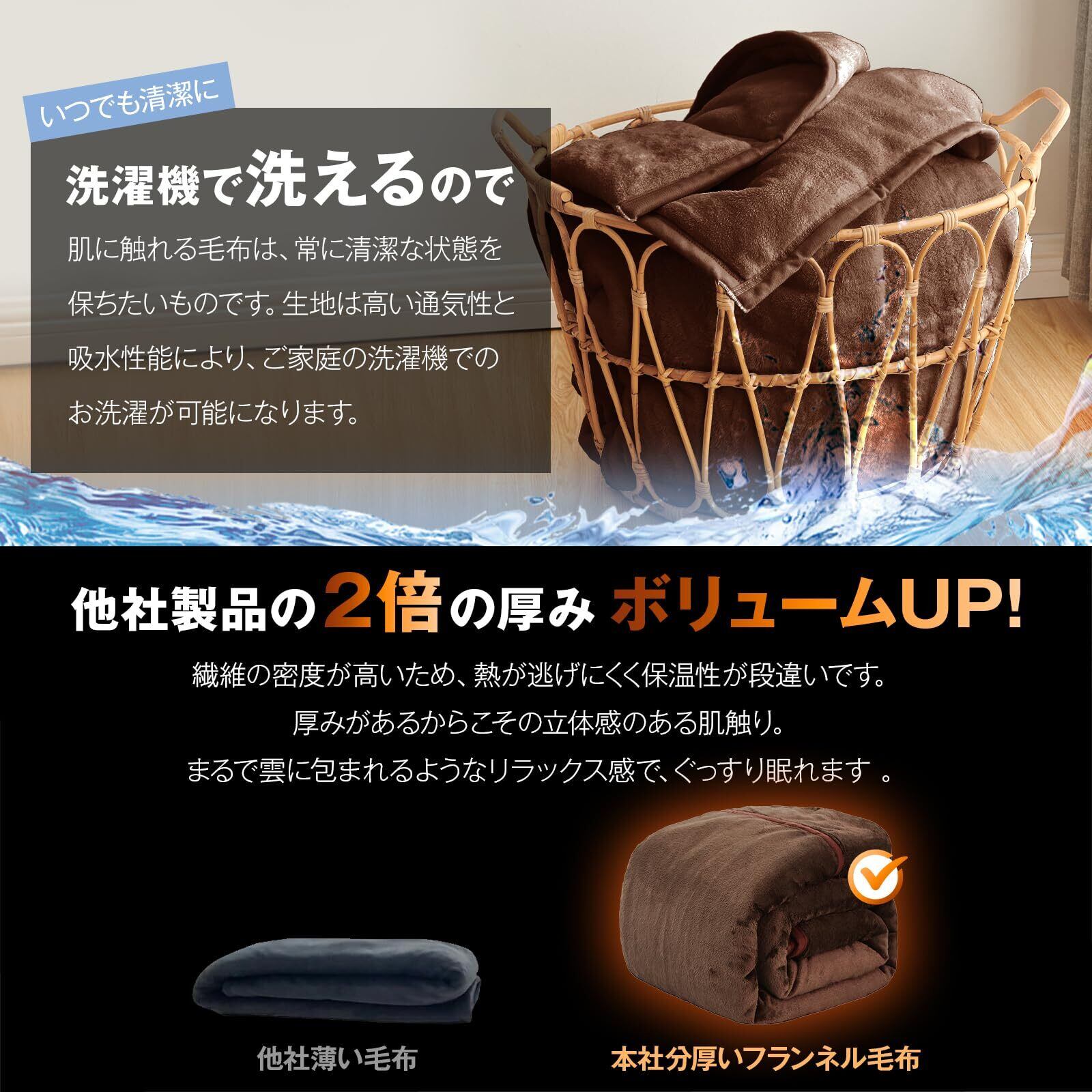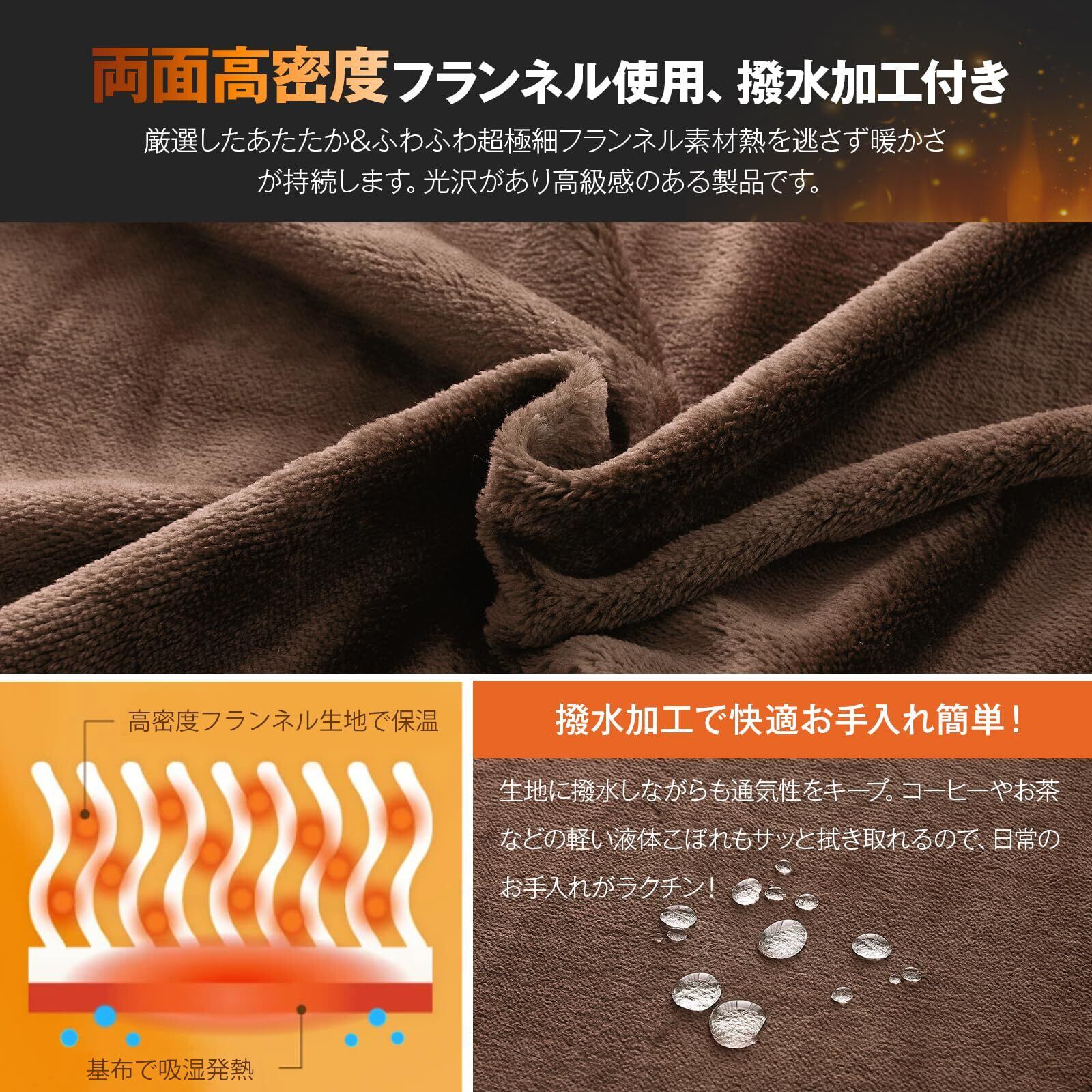 140×200cmのこの毛布は、四層構造でしっかりとした保温力を実現。厚手のフランネル生地が柔らかく、ふわふわとした肌触りを提供し、極寒の日でも暖かさを逃がしません。ブラウンの落ち着いた色合いは、どんなインテリアにもマッチし、お部屋に温もりをプラスします。