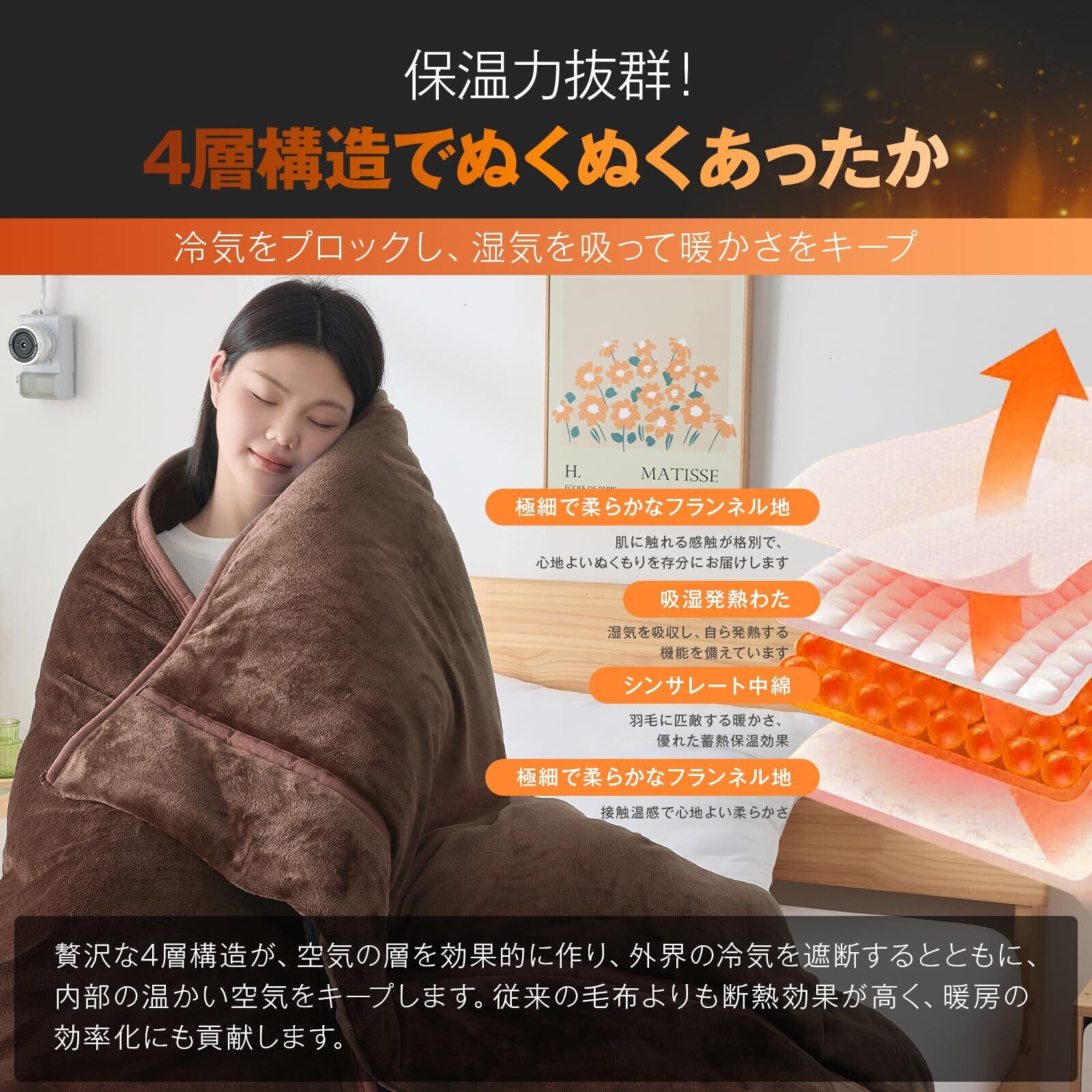 ✨【四層構造・静電気防止】表側と裏側にふんわり柔らかいフランネル生地を採用し、中間には保温性に優れた蓄熱綿と、軽くて薄いシンサレート中綿を充填した四層構造で、抜群の温かさを実感いただけます。さらに、毛布の表地部分には静電気抑制効果のある特殊な糸を使用しており、冬に気になるパチパチとした静電気を最大限抑制します。※ご注意:静電気の発生を抑制する加工であり、完全に除去できるものではございません。