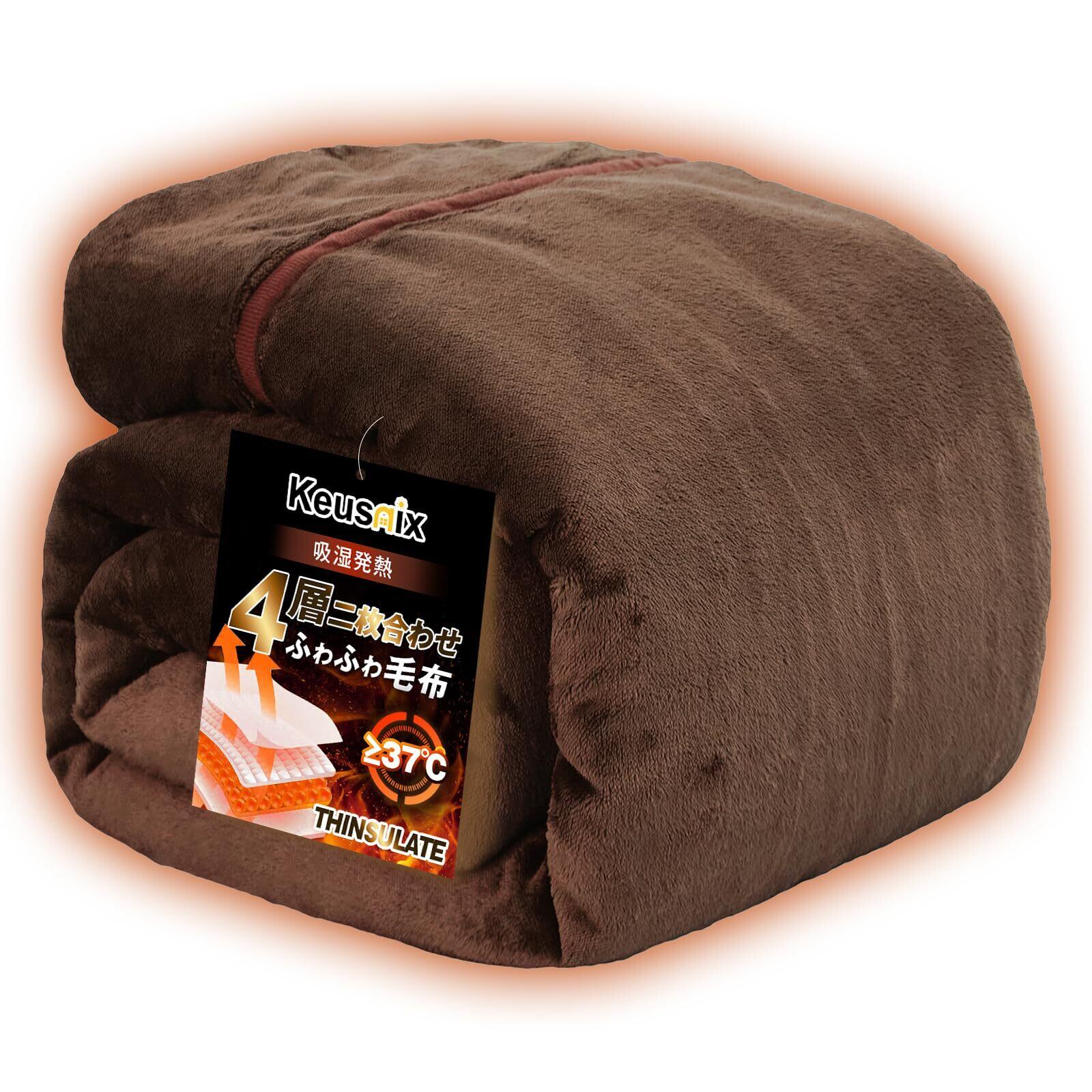 【人気商品】Keusnix 毛布 シングル 冬 ブランケット フランネル 厚手 冬用 四層構造 あったか 2枚合わせ 極暖 掛け毛布 シンサレート中綿入り 吸湿発熱 蓄熱 保温 抗菌防臭防ダニ 襟付き ふわふわ 軽量 洗える もうふ 高密度 ぶらんけっと オールシーズン 断熱素材 暖かい 毛抜けない 140×200cm ブラウン