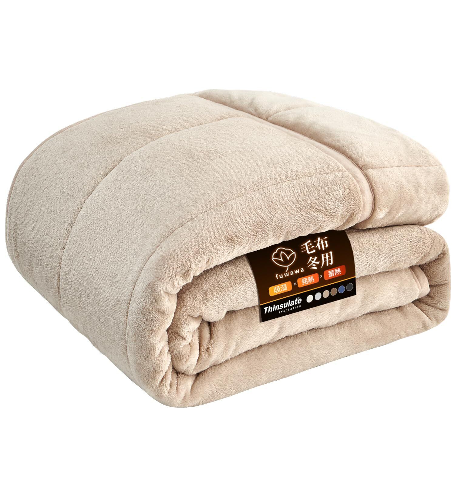 \【特価セール】fuwawa シンサレート 毛布 シングル 冬用 2枚合わせ 襟付き ブランケット 厚手 フランネル 3Mシンサレート マイクロファイバー 中綿入り 掛け毛布 暖かい かわいい おしゃれ あったか ふわふわ 吸湿速乾 抗菌防臭 発熱 軽量 防カビ 毛抜けない 静電気対策 洗える 140×200cm ベージュ/