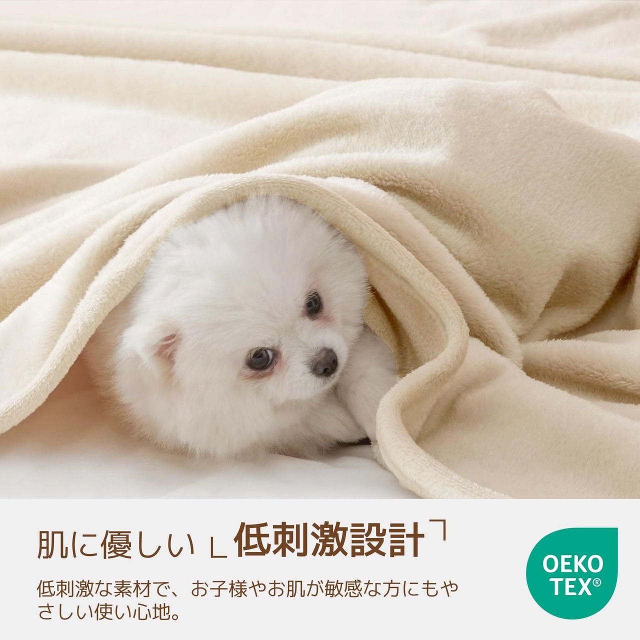 サイズ140×200cmのこの毛布は、軽量ながらも非常に柔らかく、肌に優しいマイクロファイバーを使用しています。優しいベージュカラーは、どんなインテリアにもマッチし、落ち着いた空間を演出します。
