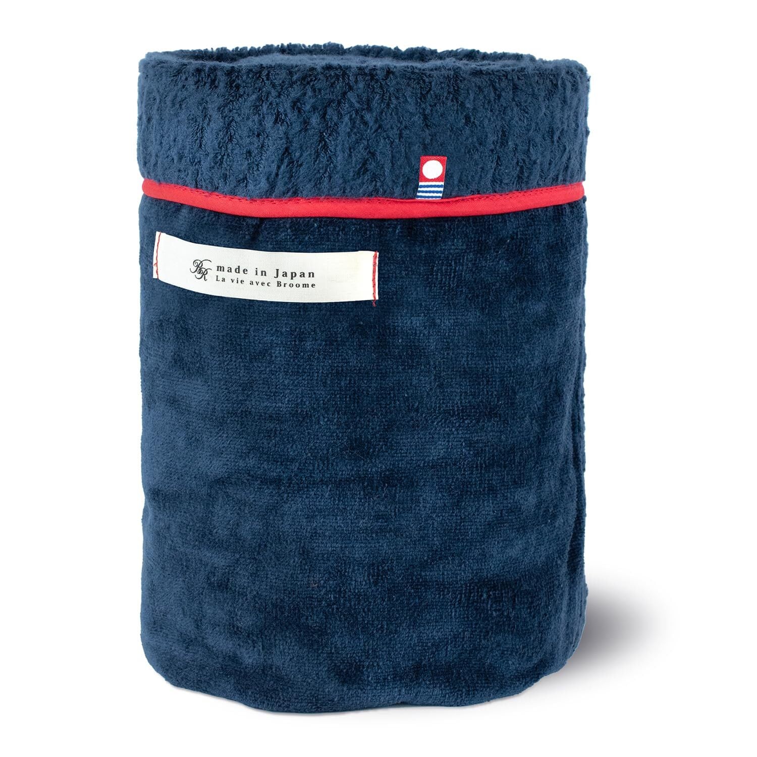 このひざ掛けブランケットは、サイズ約98×70cmで、上質な日本製の綿100%を使用しています。ネイビーの深い色合いは、どんなインテリアにも映え、落ち着いた雰囲気を演出します。
