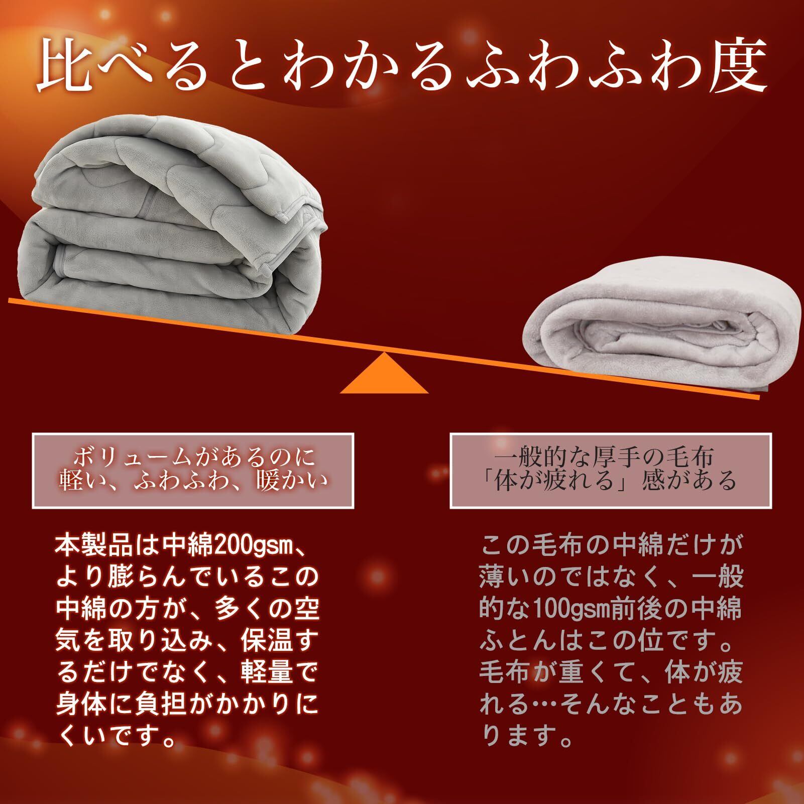 【ふわふわフランネル】高密度フランネル素材を採用しており、適度な厚さで、ふわふわ、軽くて暖かい。ふんわり柔らかく滑らかで、ぬくもりに包まれて心地良い睡眠を実現します。