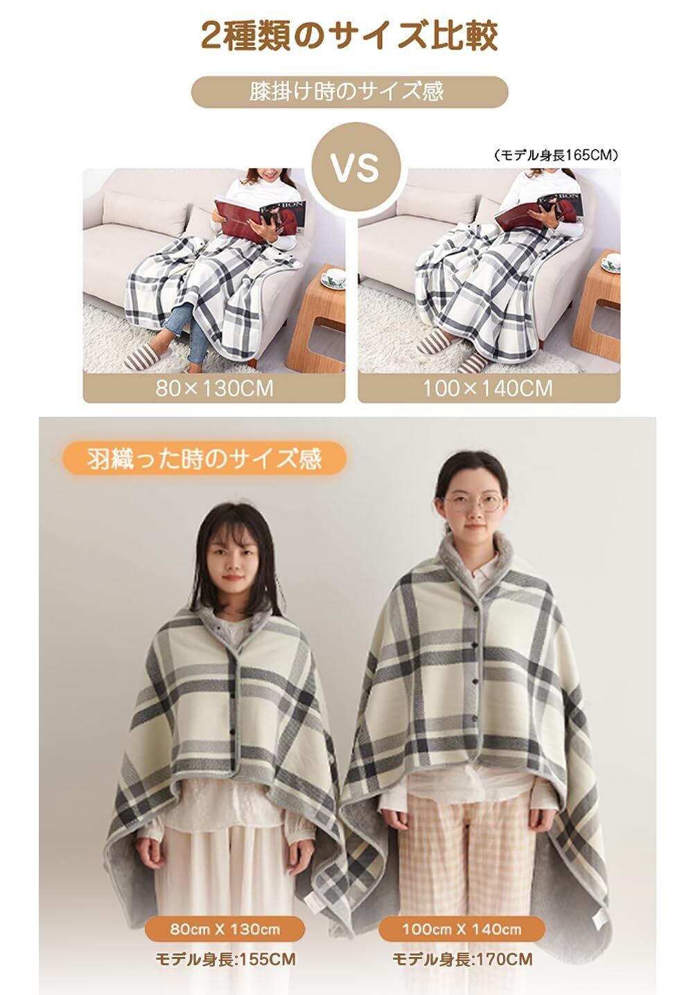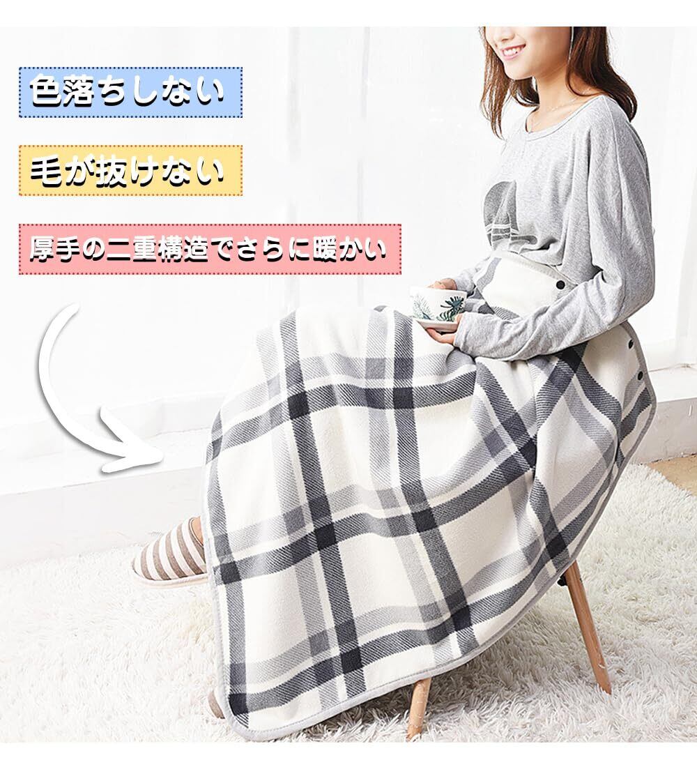 \【人気商品】[VERILADY] ひざ掛け 肩掛け 着る毛布 4wayブランケット 毛布 ボタン付き 裏起毛 ハーフケット あったか 吸湿保温 防寒対策 静電気防止 洗える 抗菌加工 柔らかい肌触り チェック柄 おしゃれ 大判 通年使用/
