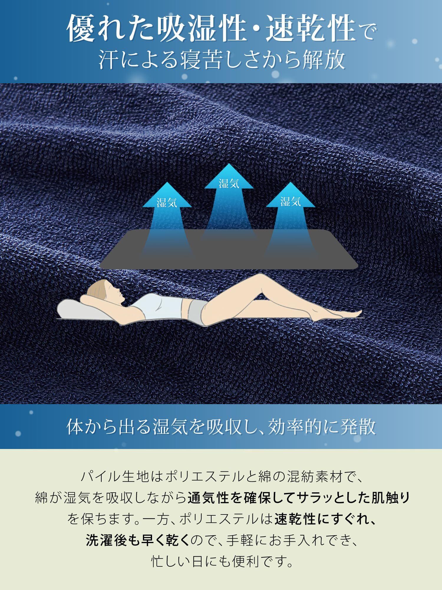 【圧倒的な冷感】体温を素早く拡散する接触冷感生地を使用。触れるたびにヒヤッと気持ちよくて、火照った体を瞬間冷却!暑くて寝苦しい夜でも極冷えで快適に眠れます。