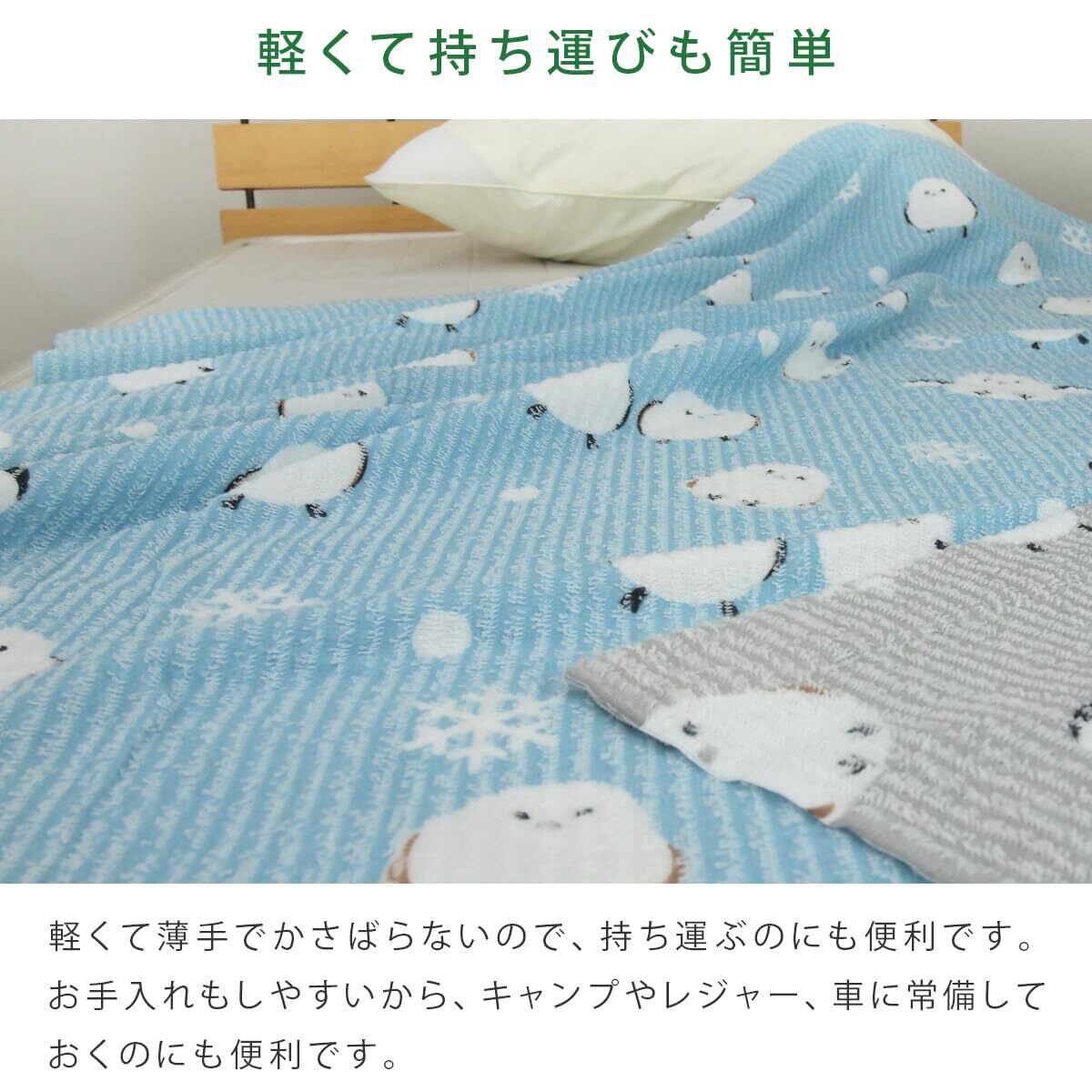 \【数量限定】リヴェール タオルケット シングル シマエナガ柄 夏用 ブランケット 綿混 140×190cm 洗える 速乾 かわいい 小鳥 (ブルー)/