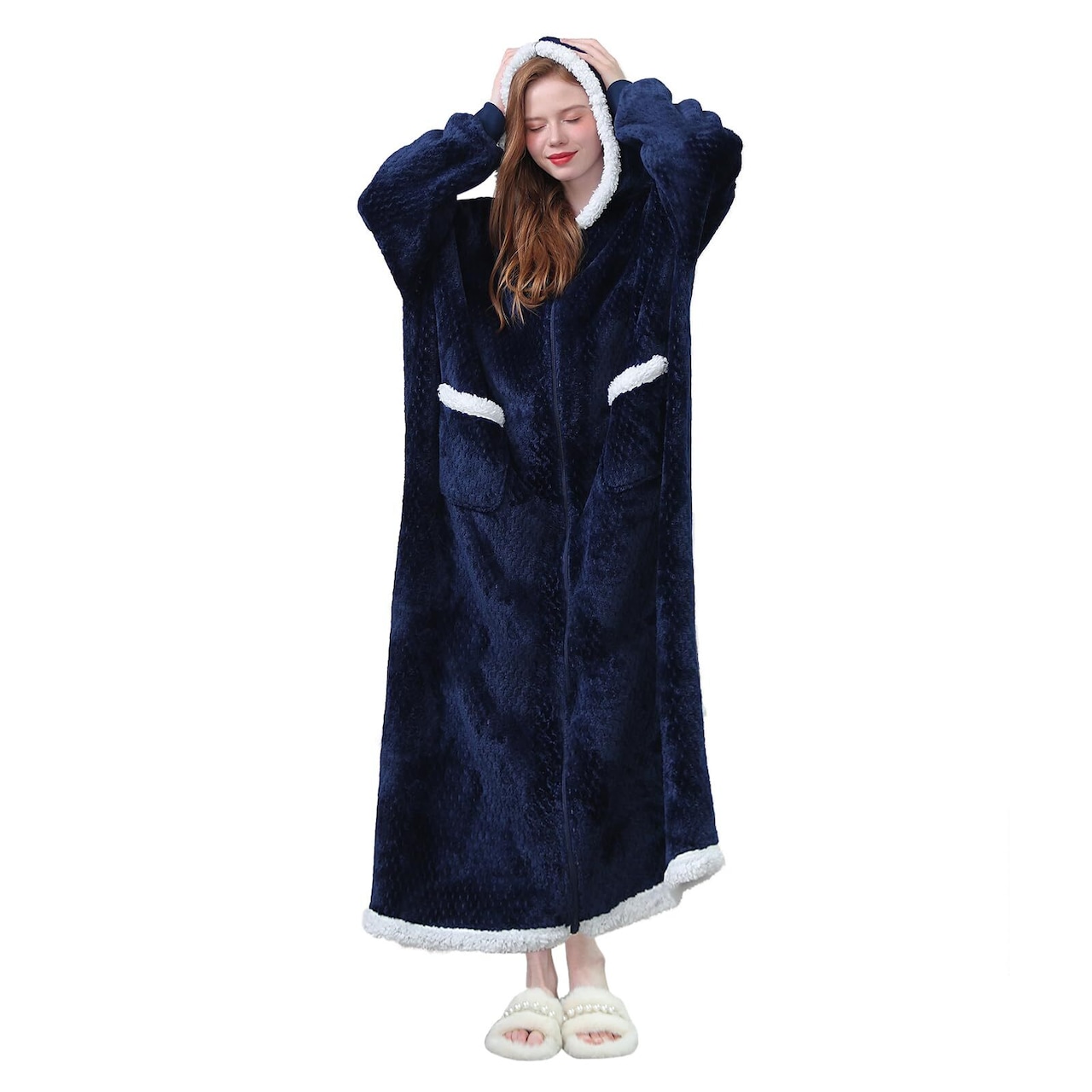 [SIPERLARI] 特厚版 着る毛布 メンズ レディース ルームウェア 部屋着 着丈135cm 特大きいサイズ 体型カバー フード付き ジッパー ポケット 二層生地 冬服 男女兼用 2-6xl 20 30 40 50 60代 防寒 保温