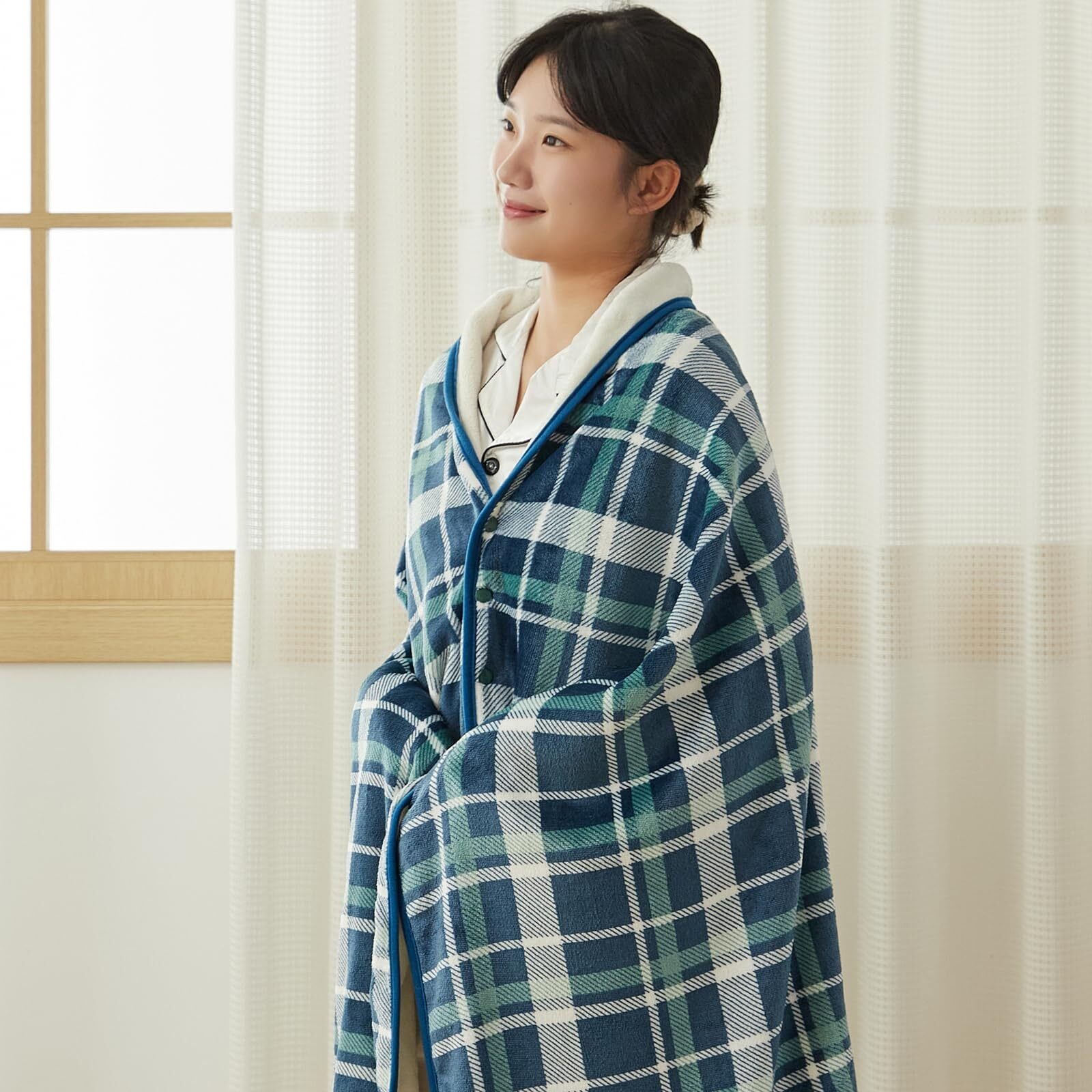 [VK Ingeroom] ひざ掛け 膝掛け ブランケット 大判 4way ボタン付き 冬 吸湿発熱 暖かい 着る毛布 肩掛け 静電気防止 防寒対策 抗菌加工 洗える 部屋 オフイス 車内 出張 アウトドア 通年使用