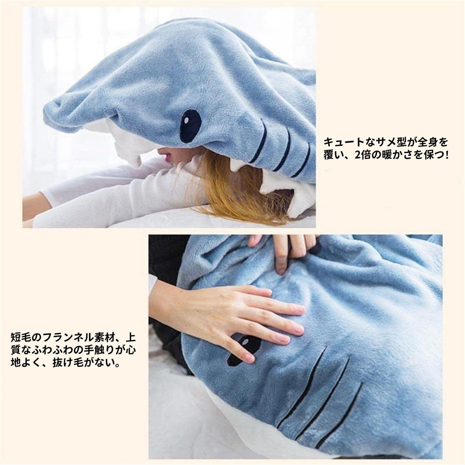 「サメのフランネルパジャマ」 着用可能なサメ毛布は、サメの口から着用され、ユニークなサメの形は非常にかわいいです、ぬいぐるみのサメのようにソファに横たわって、尾の分割設計は、利便性を考慮して、自由に歩くことができます
