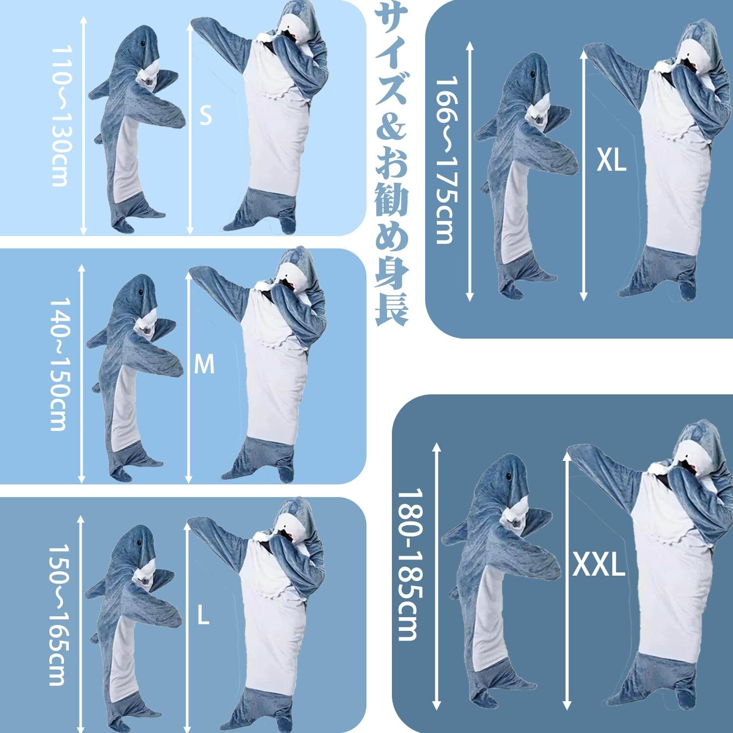 [Powfly] 【2025新改良】 サメパジャマ さめ着ぐるみ サメ着る毛布 寝袋 子供用 大人用 親子パジャマ 暖かい サメブランケット 冷房対策 秋冬防寒