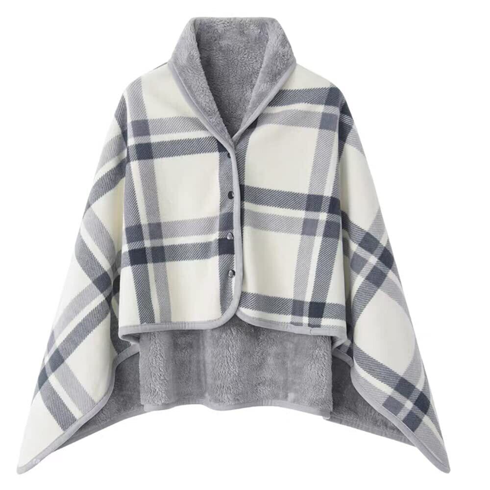 Lilyan ひざ掛け 膝掛け ひざかけ ブランケット 着る毛布 4way大判 厚手 暖かい 軽量 おしゃれ ハーフケット フランネル 冬 防寒対策 静電気防止 吸湿発熱 チェック柄 部屋 オフイス 車内 出張 アウトドア ボタン付き 通年使用