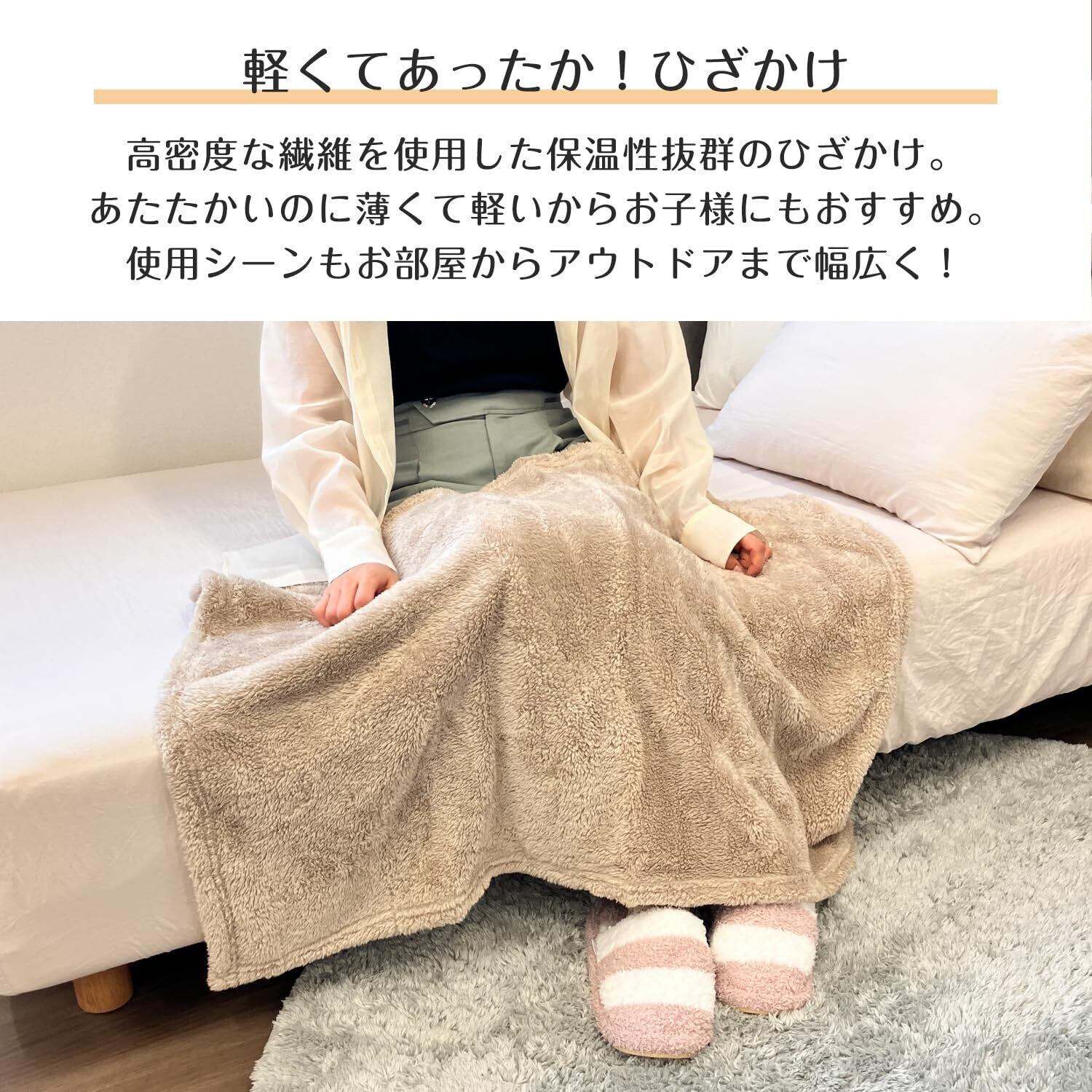 【高密度な繊維でしっかり保温】 ひざ掛けは薄手で軽い毛布ですが、高密度なフランネル生地を使用しているため温まった空気を逃がさずしっかりあったか! 重い毛布が苦手な方やお洗濯や収納を楽にしたい方にもおすすめ!