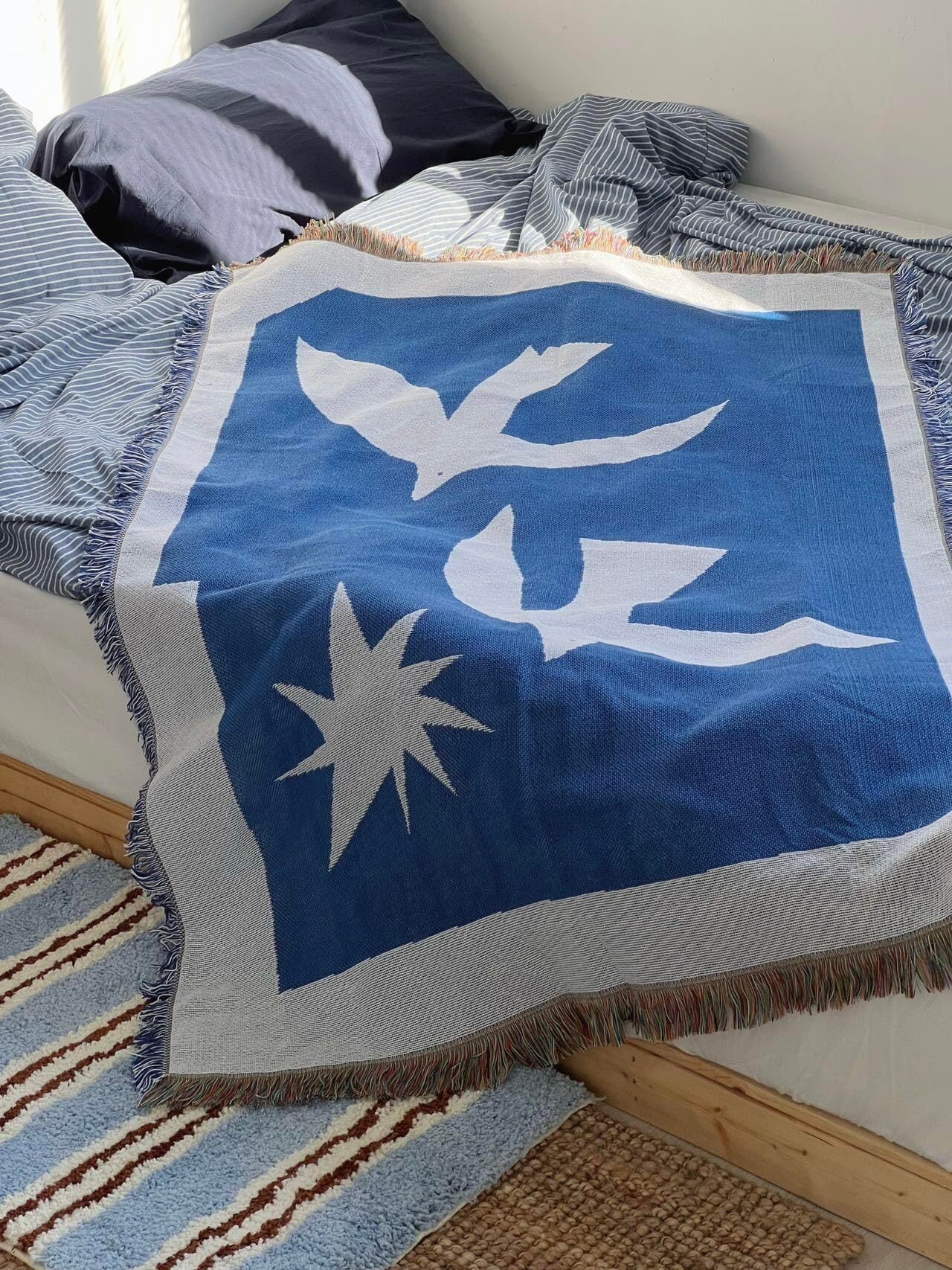 このベッドカバーには、アンリ・マティスによる美しい鳥のイラストが施されており、シンプルながらも存在感のあるデザインが魅力です。洗練された色使いは、さまざまなインテリアスタイルにマッチし、お部屋に優雅さをプラスします。柔らかな素材は、快適な肌触りを提供します。