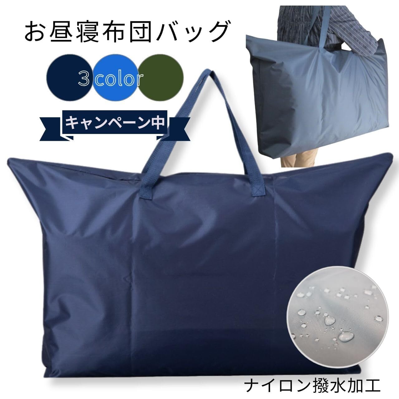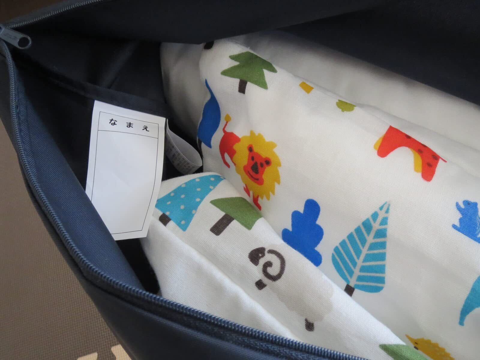 「お子様のお昼寝タイムをもっと快適に!撥水加工のナイロン製お昼寝布団バッグが新登場!便利なファスナー付きで、毎日の持ち運びが楽々です。」
