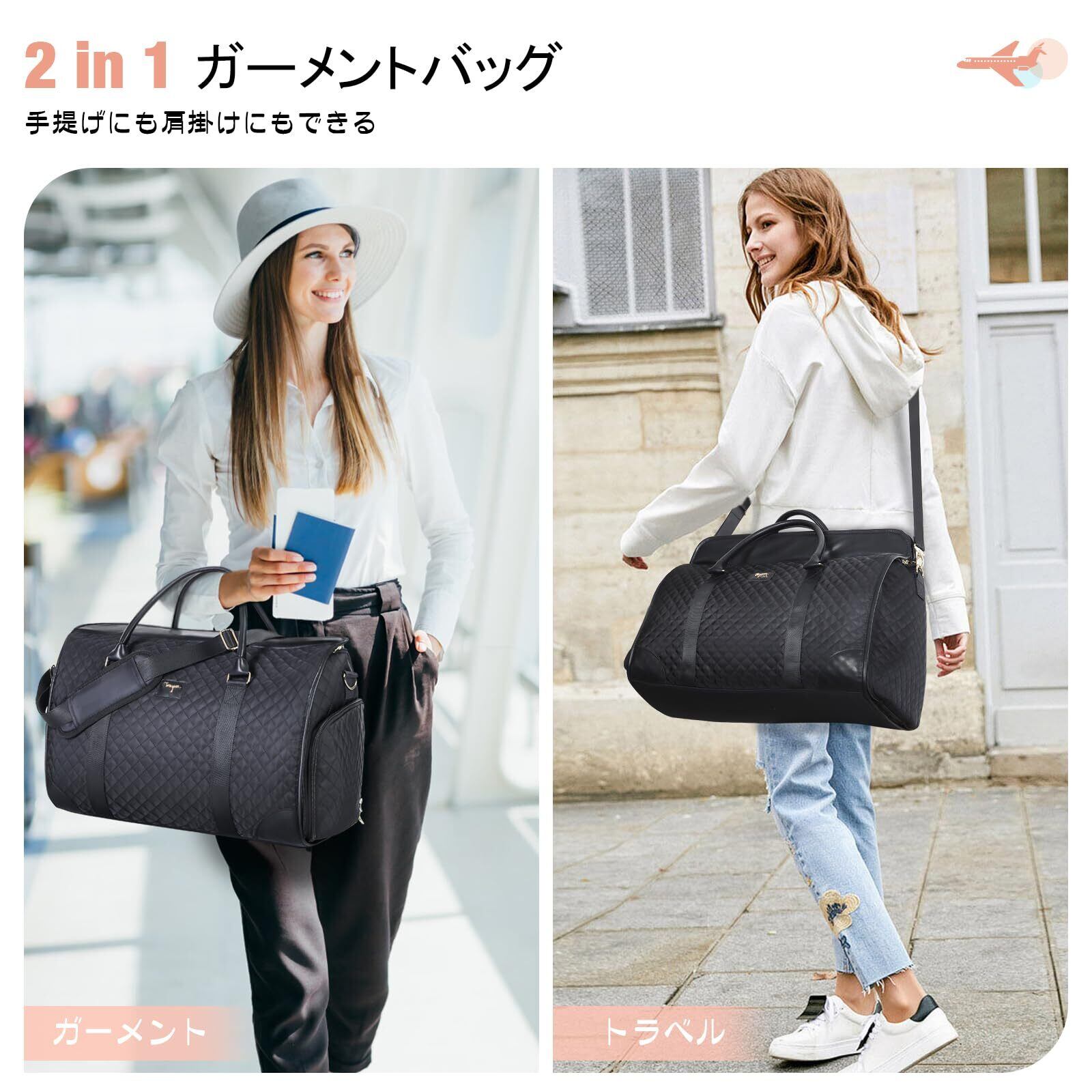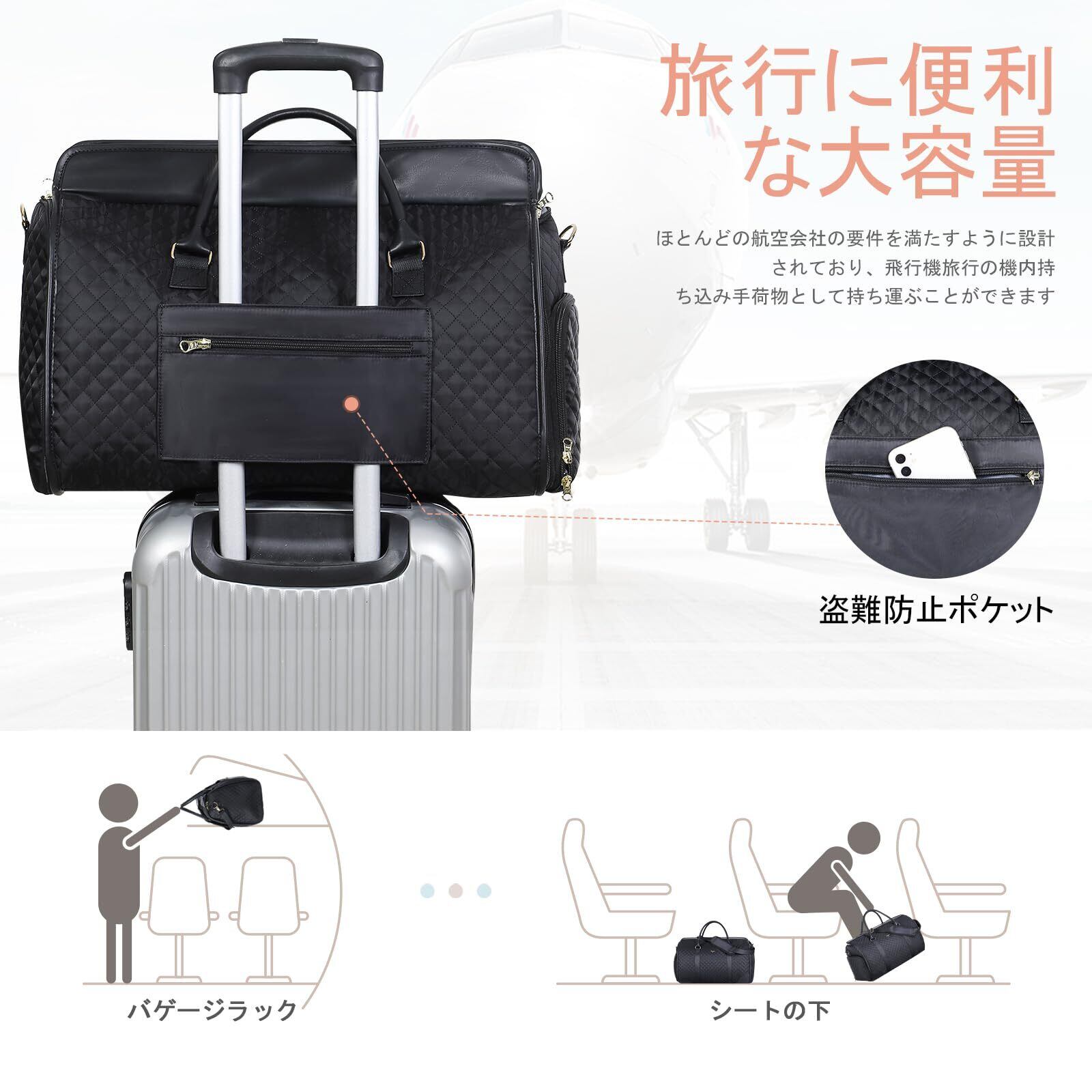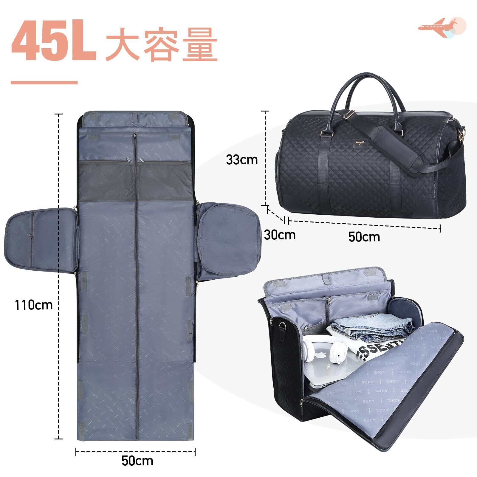 Lekesky ガーメントバッグ - 45L 大容量 スーツ収納 靴収納 防水 旅行バッグ 型くずれ防止 手提げ 持ち運び 防塵 撥水加工 出張 旅行 機内持ち込み 3-5泊 メンズ レディース キルティング (ブラック)