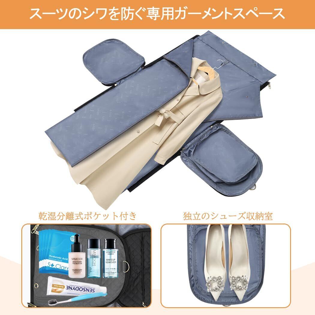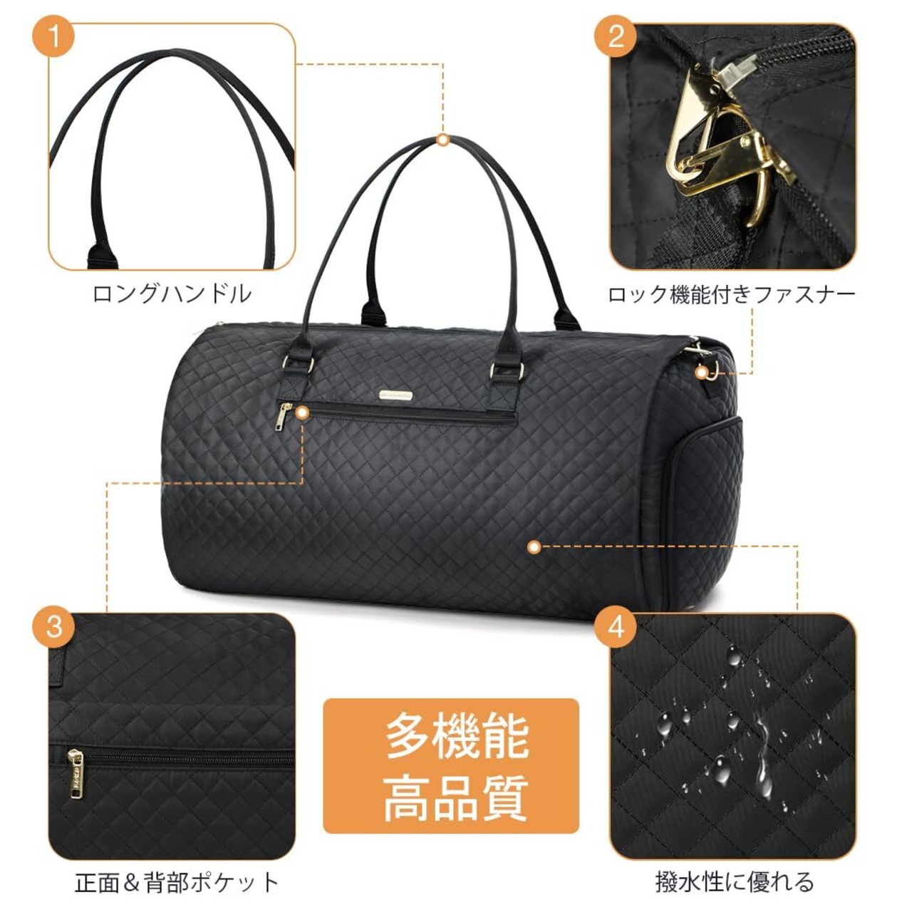 【大容量の収納力】: ガーメントバッグと女性用ダッフルバッグの特徴を組み合わせたファンシーなデザインで、吊り下げ式衣類(スーツ、スカート、イブニングドレス)を入れる。 独立したシューズバッグは、汚れた靴と清潔な衣類を完全に分けて収納できます。様々な内ポケット、洗面用具、化粧品、電子機器などを入れる。