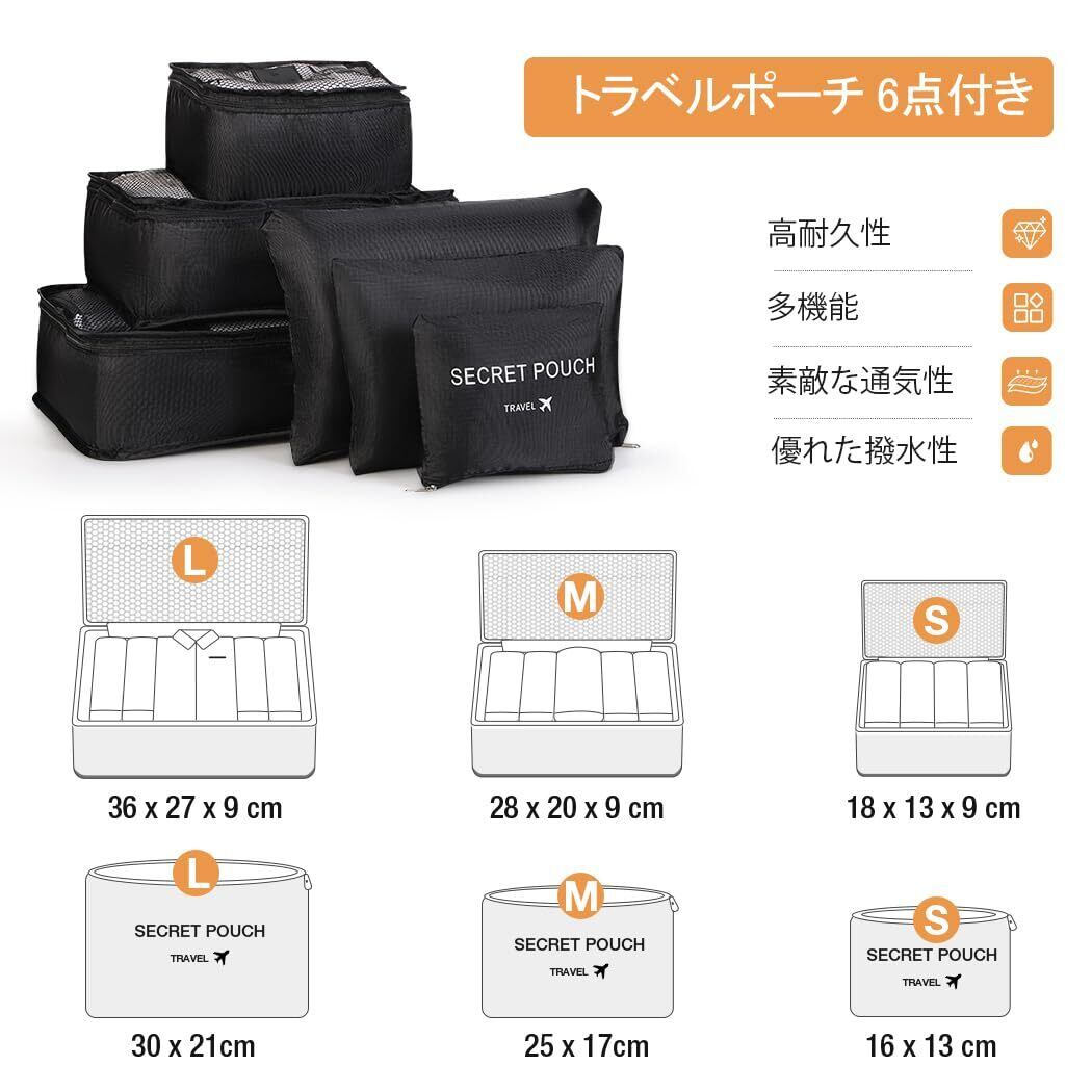 6セットのパッキングキューブが含まれており、衣類や小物をスムーズに整理できます。これにより、ストレスフリーな使用感を実現しています。