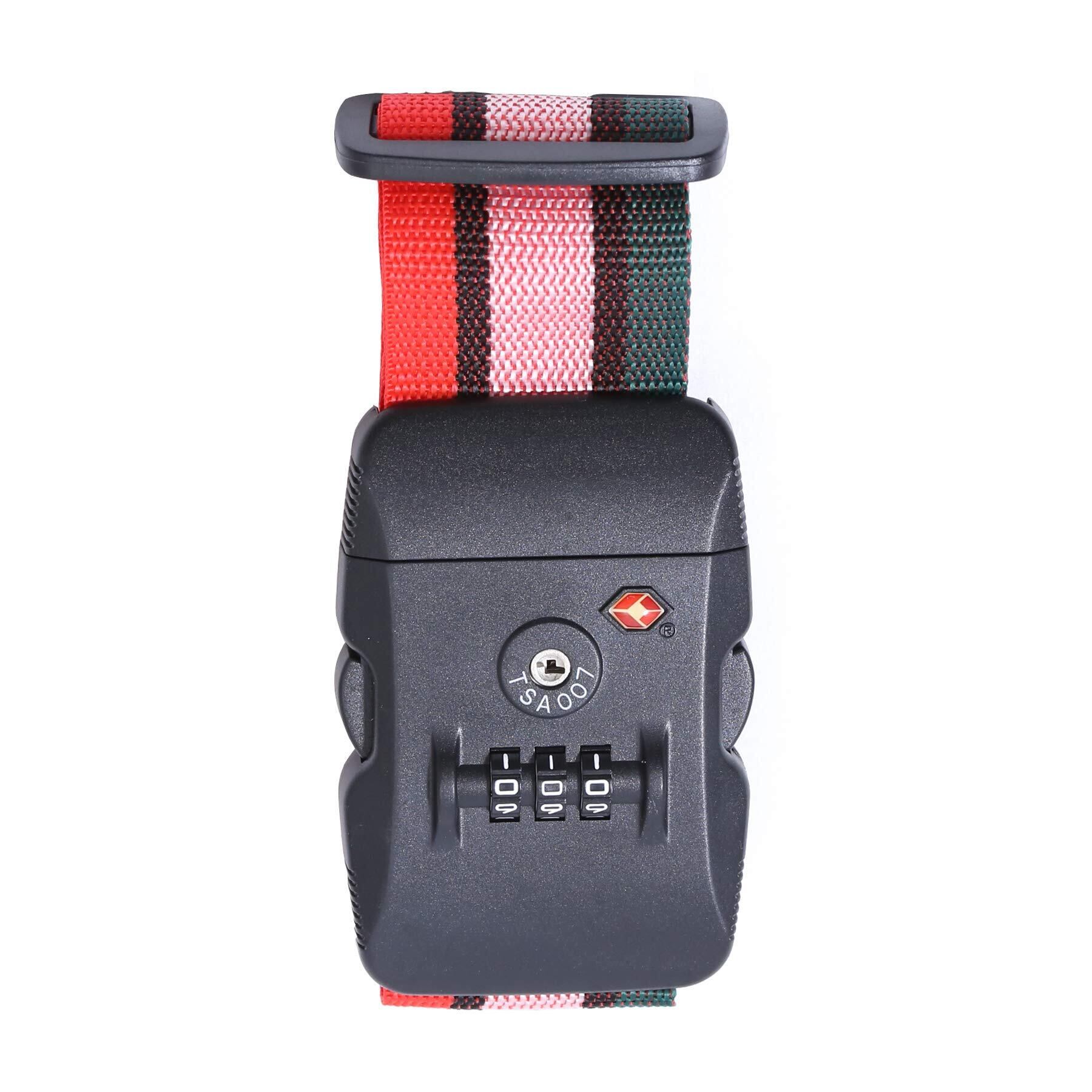 Logic(ロジック) スーツケースベルト TSAロック (全12色 グリーン×ピンク×レッド) [盗難・紛失・荷崩れ防止] トラベルベルト 長さ調節可能 海外旅行 出張用 スーツケースバンド 旅行鞄用ベルト トラベル 飛行機グッズ トランクベルト