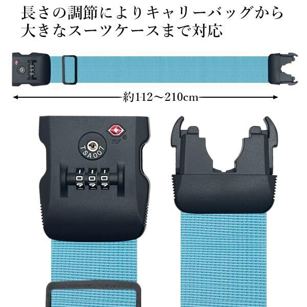 【TSAロック】スーツケース ベルト 3桁ダイヤル式 バンド 長さ調節可能 I字型 旅行 盗難防止 便利グッズ ライトブルー