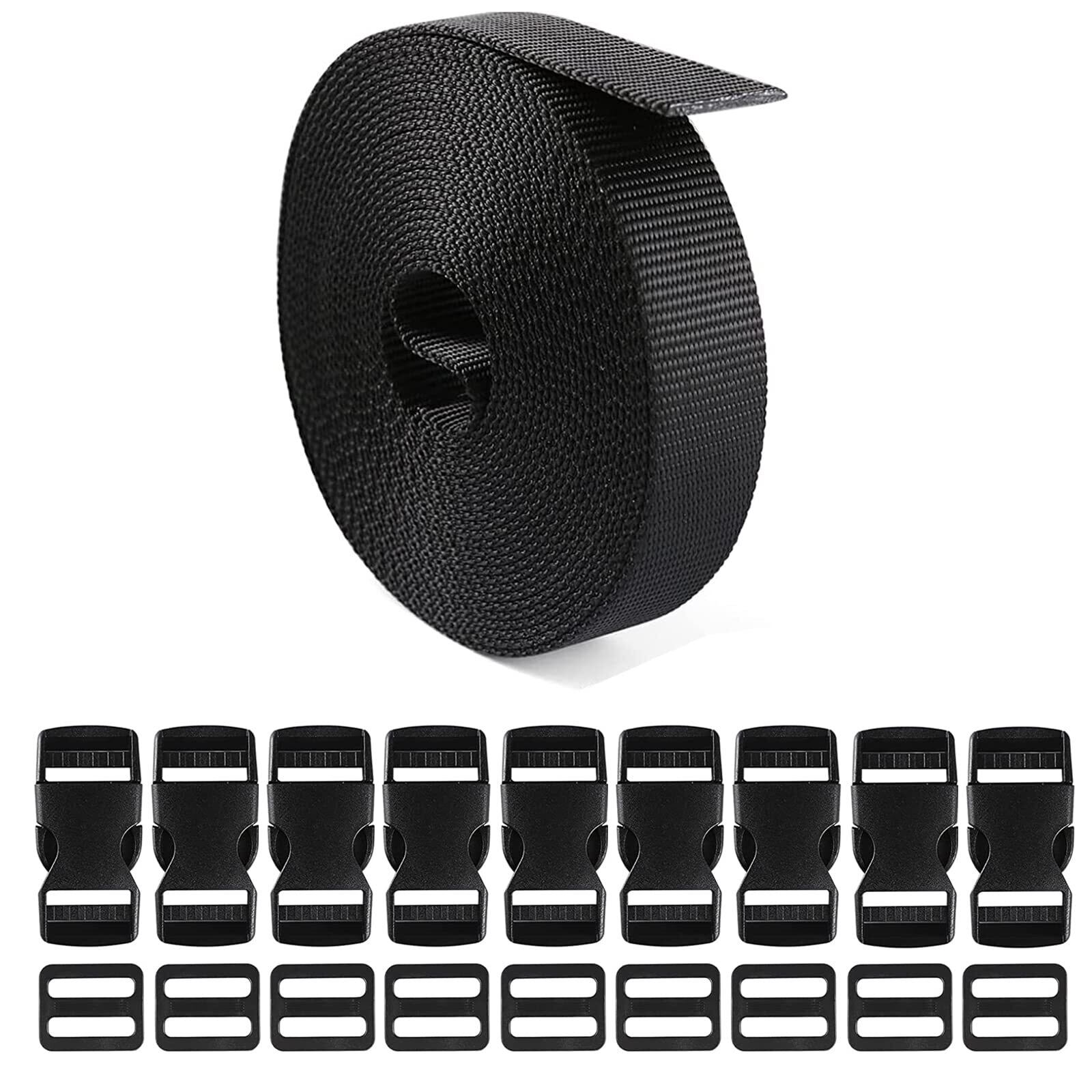 【特価セール】[サムコス] サイドリリースバックル PPベルト ベルト送り 10セット 25mm×10m ワンタッチ式バックル スーツケースベルト 荷崩れ防止 ベルト ワンタッチ式ロックプラスチックロック10個入り 荷締めベルト 作業用ベルト 調整可能 (黒)