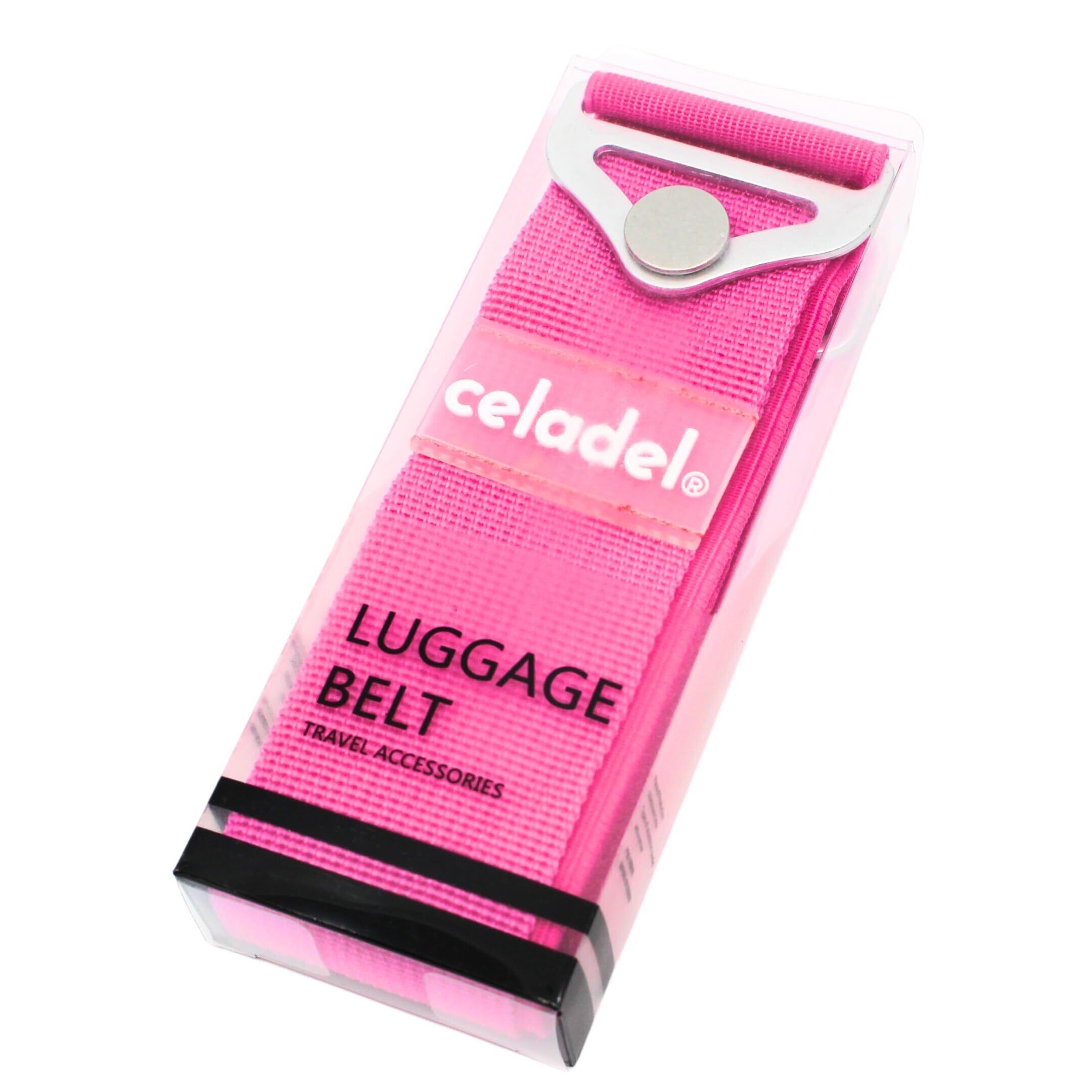 「旅行の安心をサポート!celadelの可愛らしいピンクのスーツケースベルトで荷物をしっかり固定しましょう。」
