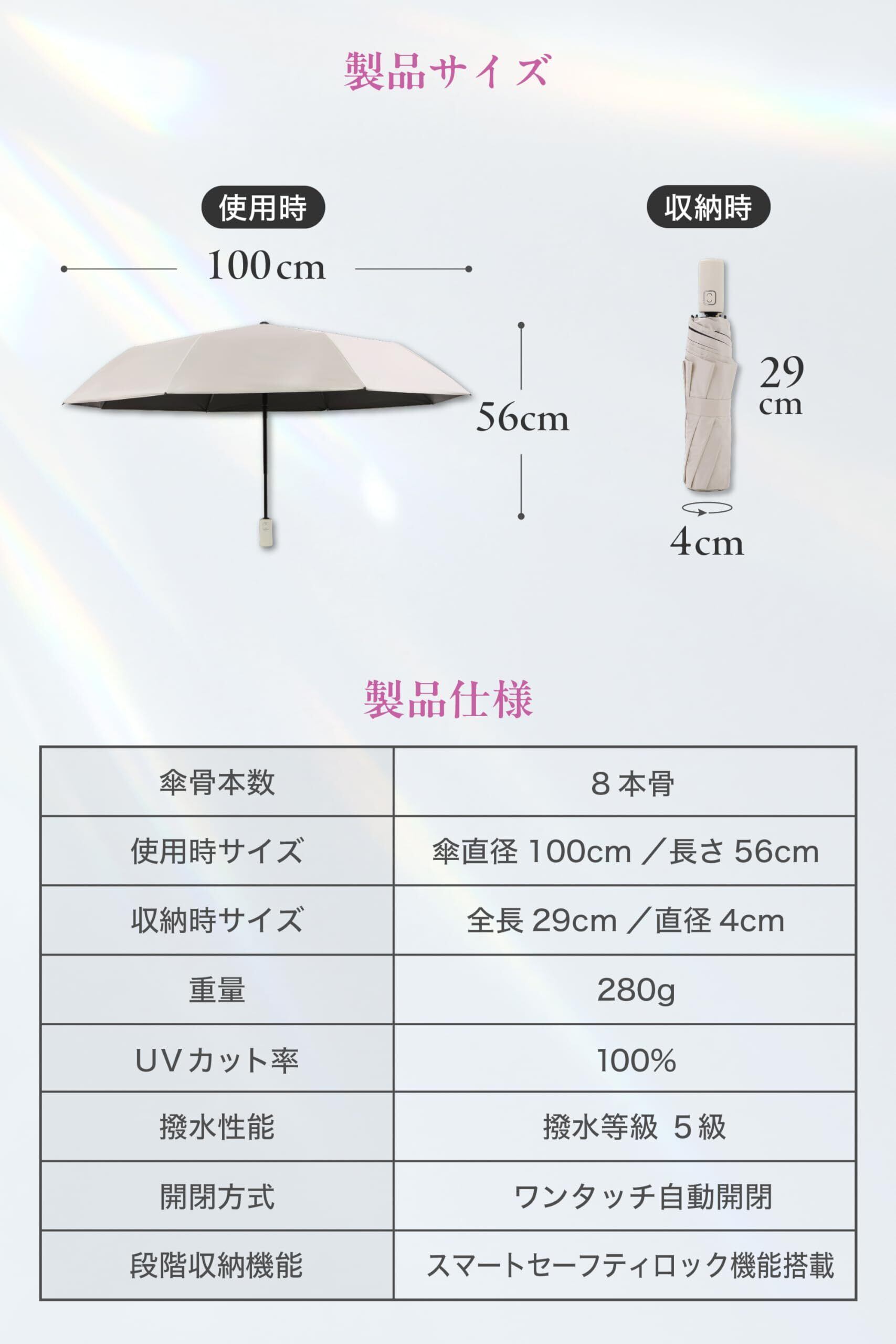 日傘 晴雨兼用 UVカット率100% 完全遮光 軽量 280g スマートセーフティロック機能 コンパクト 折りたたみ レディース メンズ 男女兼用 遮熱 携帯便利 ワンタッチ自動開閉