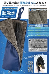 【綿タオルの3倍の強力な吸水性+7倍の速乾性、防水・防しみ】 超吸水マイクロファイバーの内側を使用しており、水分に触れると瞬時に素早く吸収します。吸水力は綿質タオルの3倍で、スポンジ級の吸水効果により折り畳み傘表面の水分を完全に吸収し、水滴の残りを防ぎます。外側は高密度の防水生地を使用しているため、水分のしみ込みを効果的に遮断します。吸水しすぎた場合は、手で押すことで簡単に排水することができます。特に梅雨の季節に適しています。また、非常に高い速乾性を備えており、乾燥にかかる時間が非常に短いです。手提げひもにはボタンが付いており、干すのが非常に便利です。