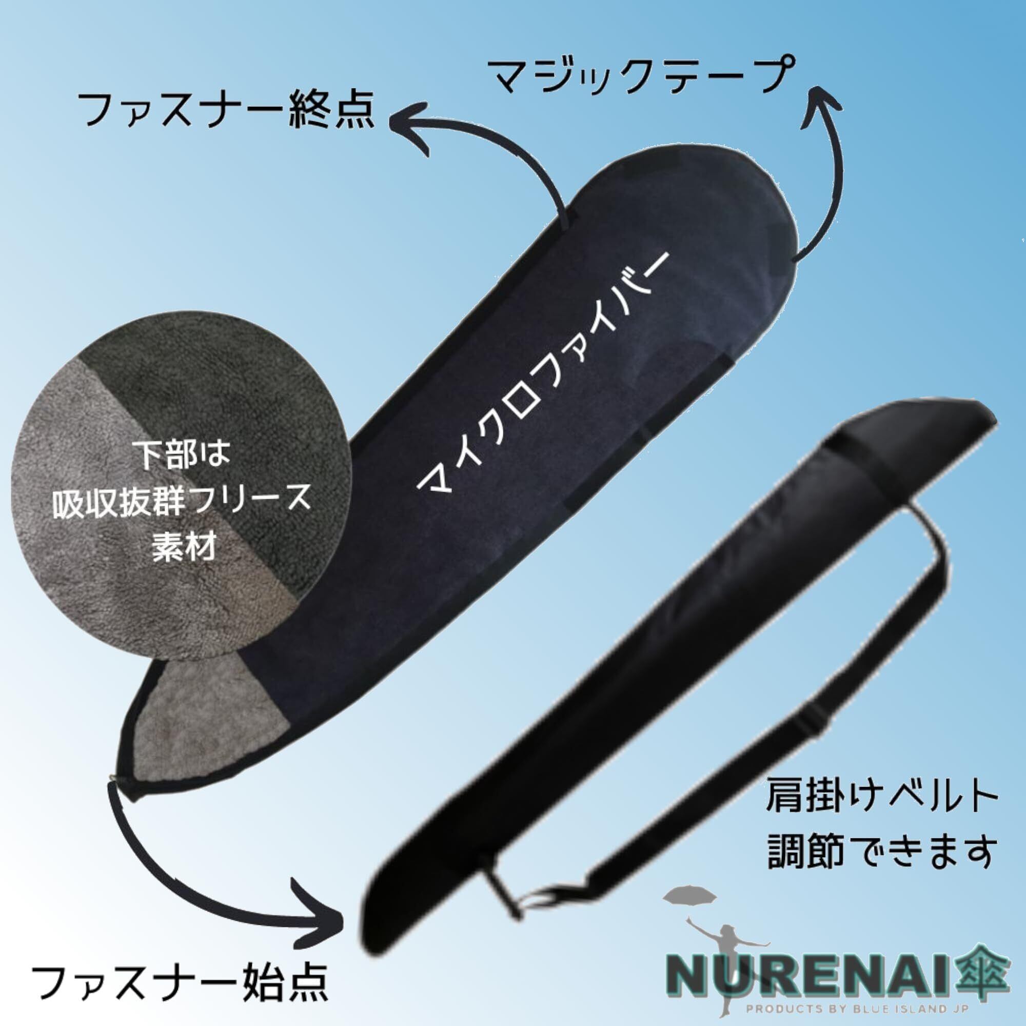 【在庫処分】〔NURENAI傘〕長傘専用 全面 マイクロファイバー 傘カバー 肩掛け ロングタイプ 超吸水 傘専用 カバー ケース 傘ケース 袋 〔75cm ブラック〕