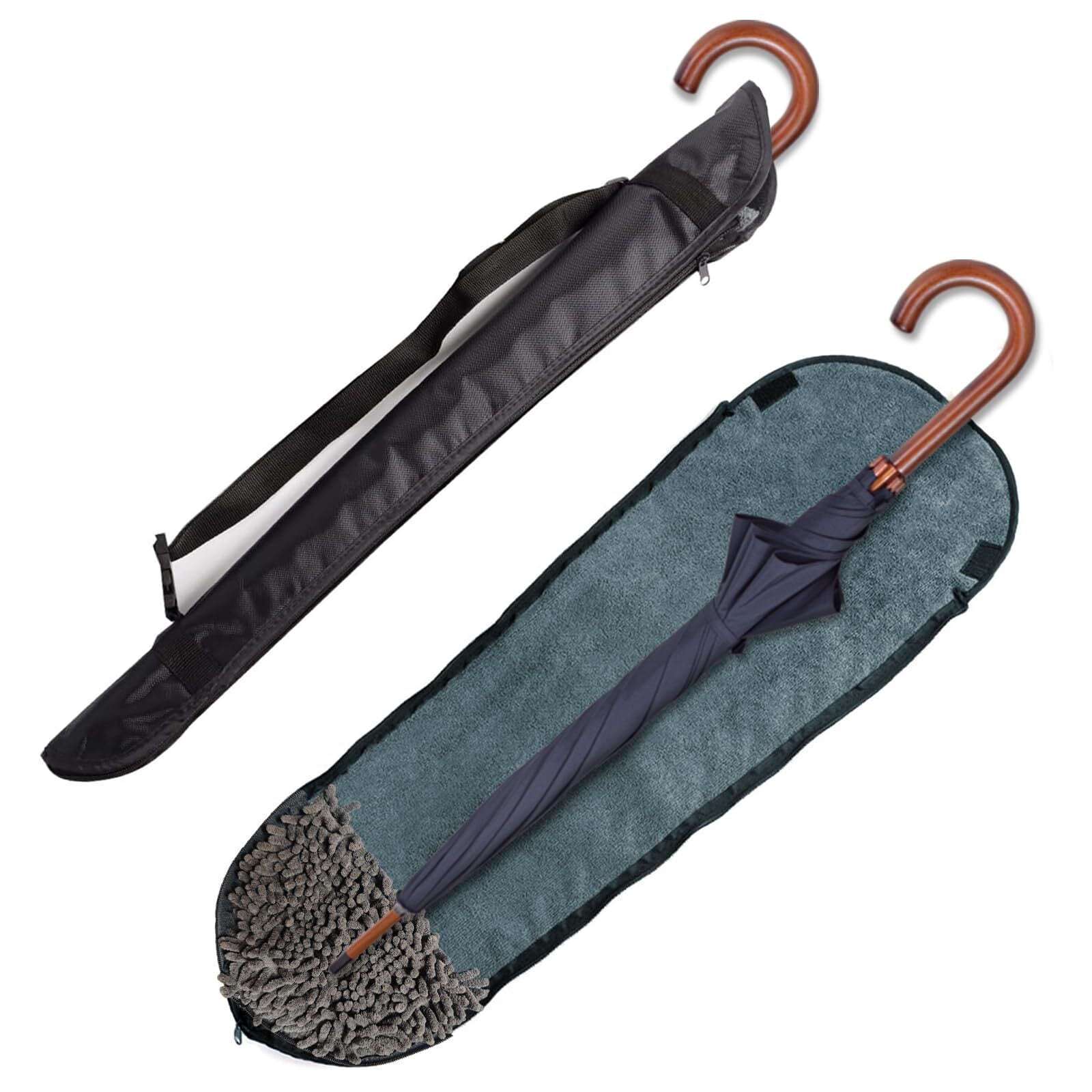 LEISURE CLUB 傘カバー 長傘用 傘袋 85cm 超吸水 全面 マイクロファイバー 長傘専用ケース 肩掛け 斜め掛け 調節可能 防カビ 雨の日 梅雨対策 車内 通勤 通学 携帯便利 (ブラック, 85*15cm)