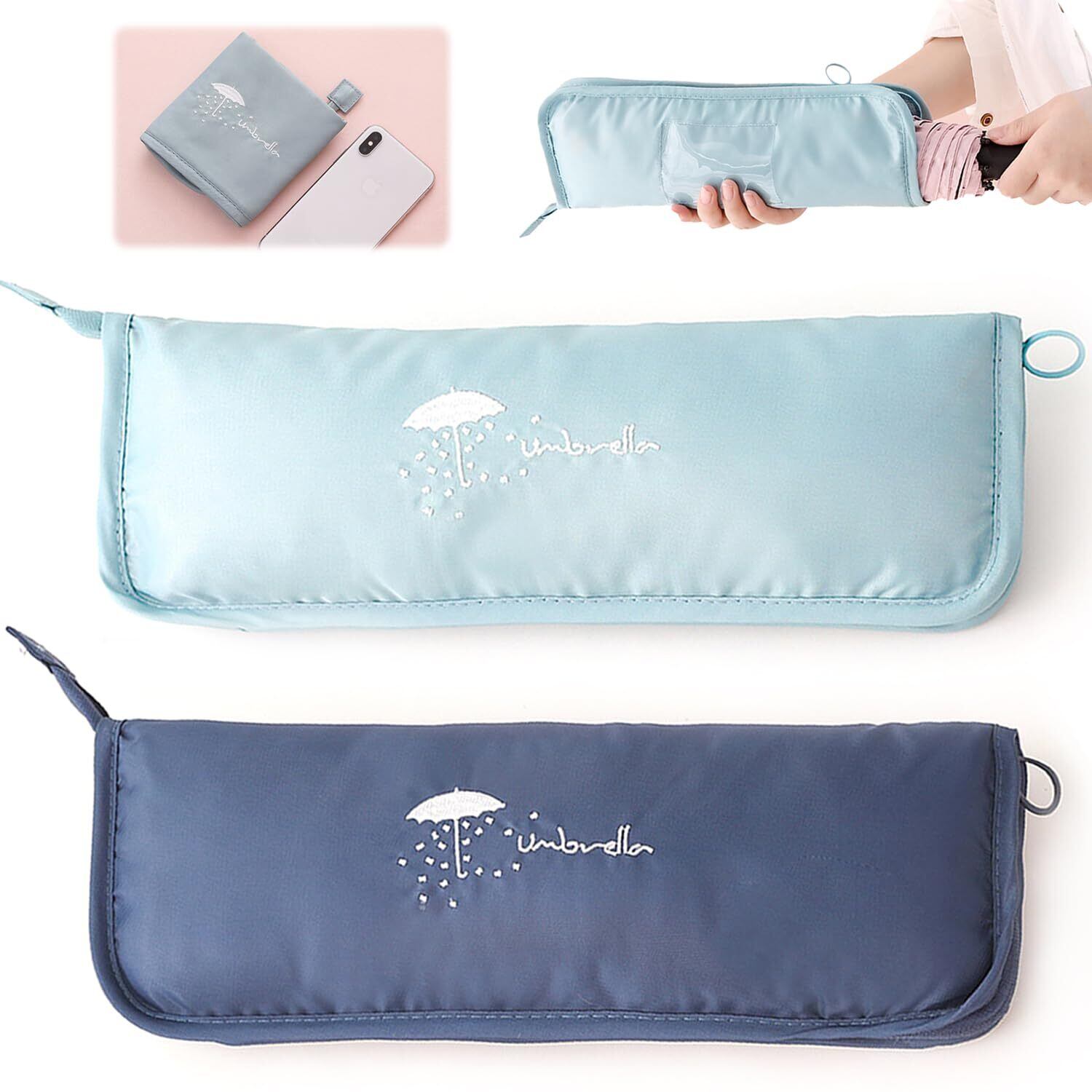 【製品仕様】 折りたたみ傘用 傘カバー。数量:2個セット。カラー:ネイビー+スカイブルー 。サイズ:31cm×12cm。折りたたみ傘適応サイズ:28cmまでの折りたたみ傘対応。